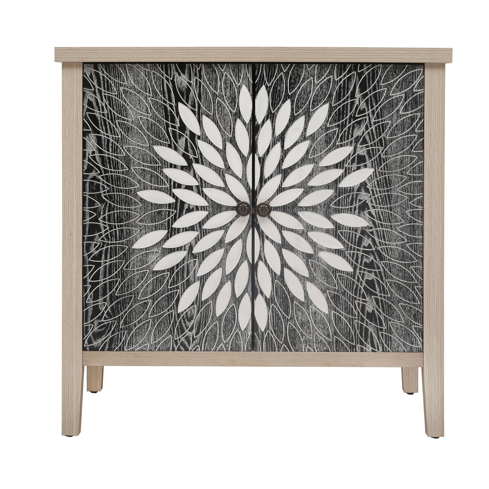 2 Door Carved Storage Cabinet With Adjustable Shelf, Accent Furniture