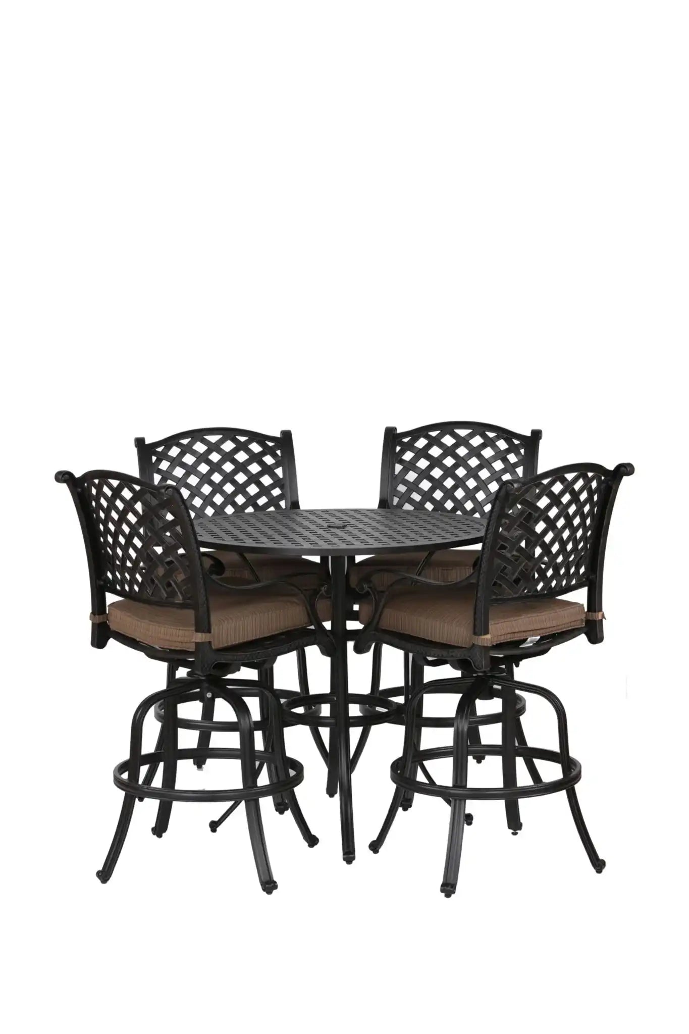 Round 41.97" Long Bar Height Dining Set With Cushions