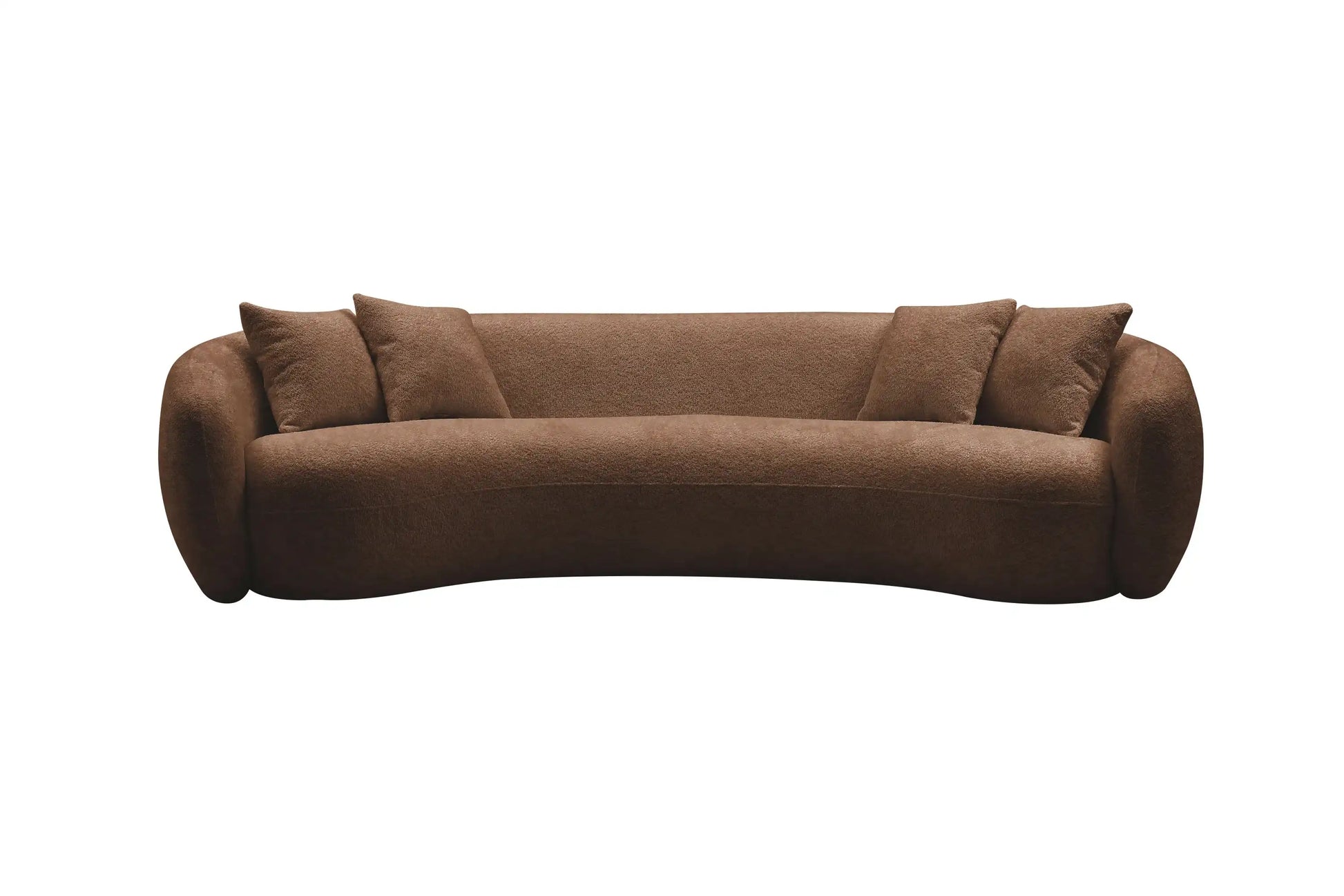 Experience the ultimate in modern comfort and style with the 102'' 5-Seater Boucle Sofa. This stunning half moon curved sectional is upholstered in luxurious teddy fleece brown boucle fabric, creating a cozy and inviting atmosphere in any living room. Its contemporary silhouette and plush cushions make it the perfect centerpiece for gatherings, relaxation, or entertaining guests.