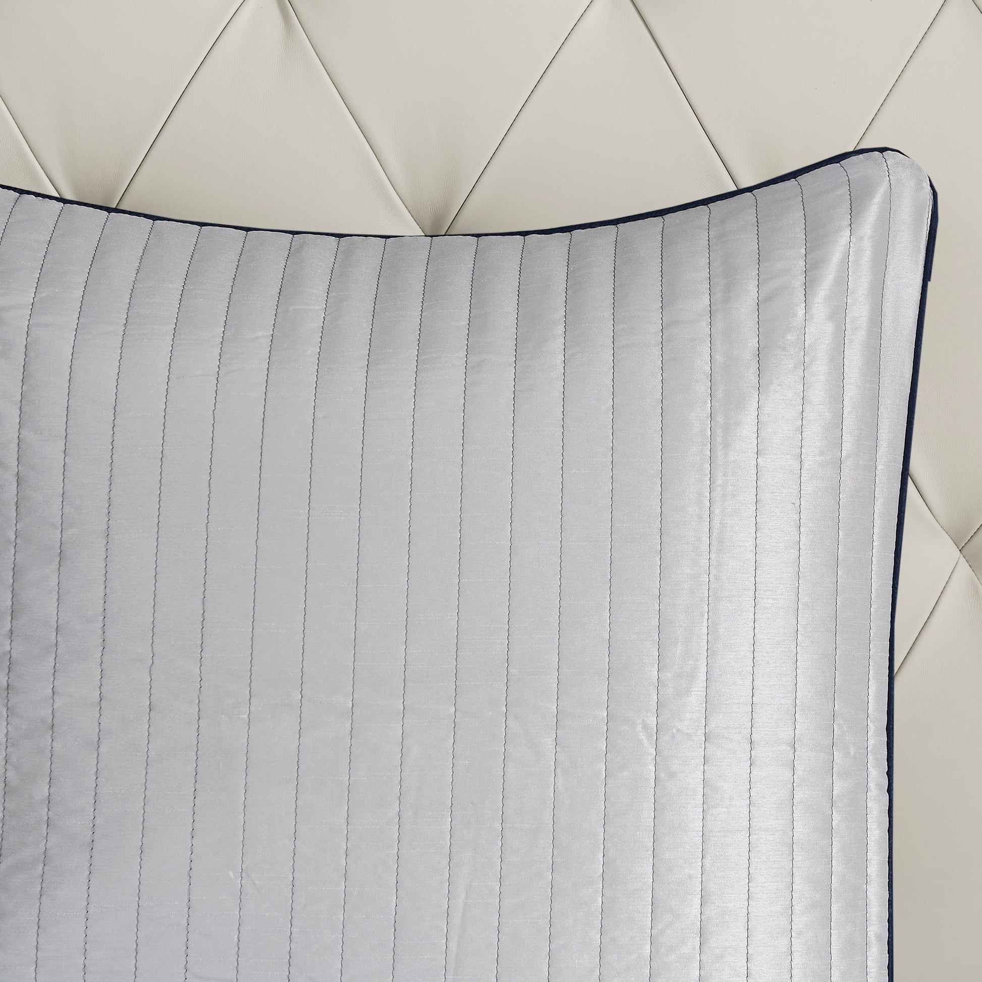 - Detailed design includes 2" flange and 1/2" flat piping on comforter and shams for a refined look.