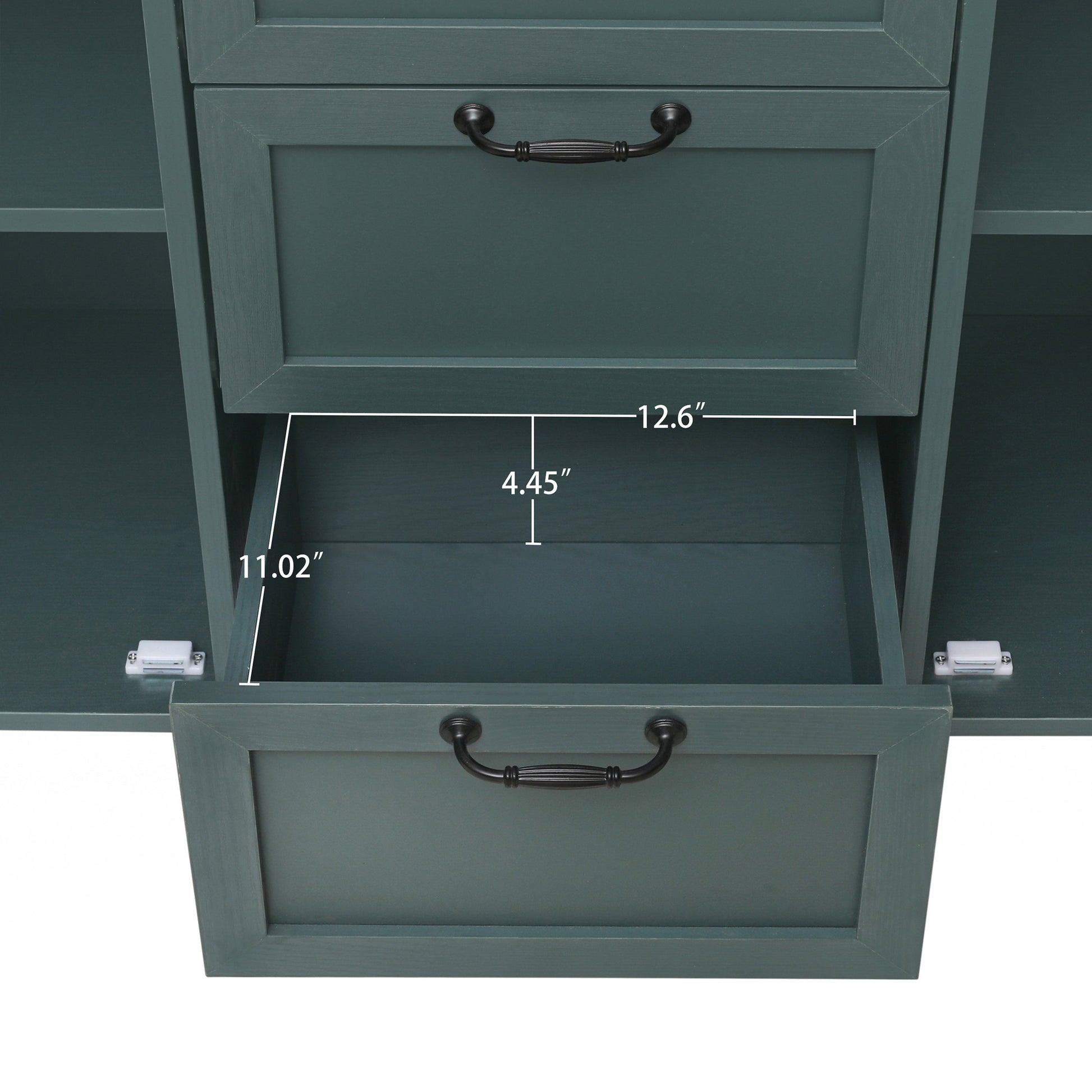 - Drawers feature bottom slide rails for smooth, effortless operation