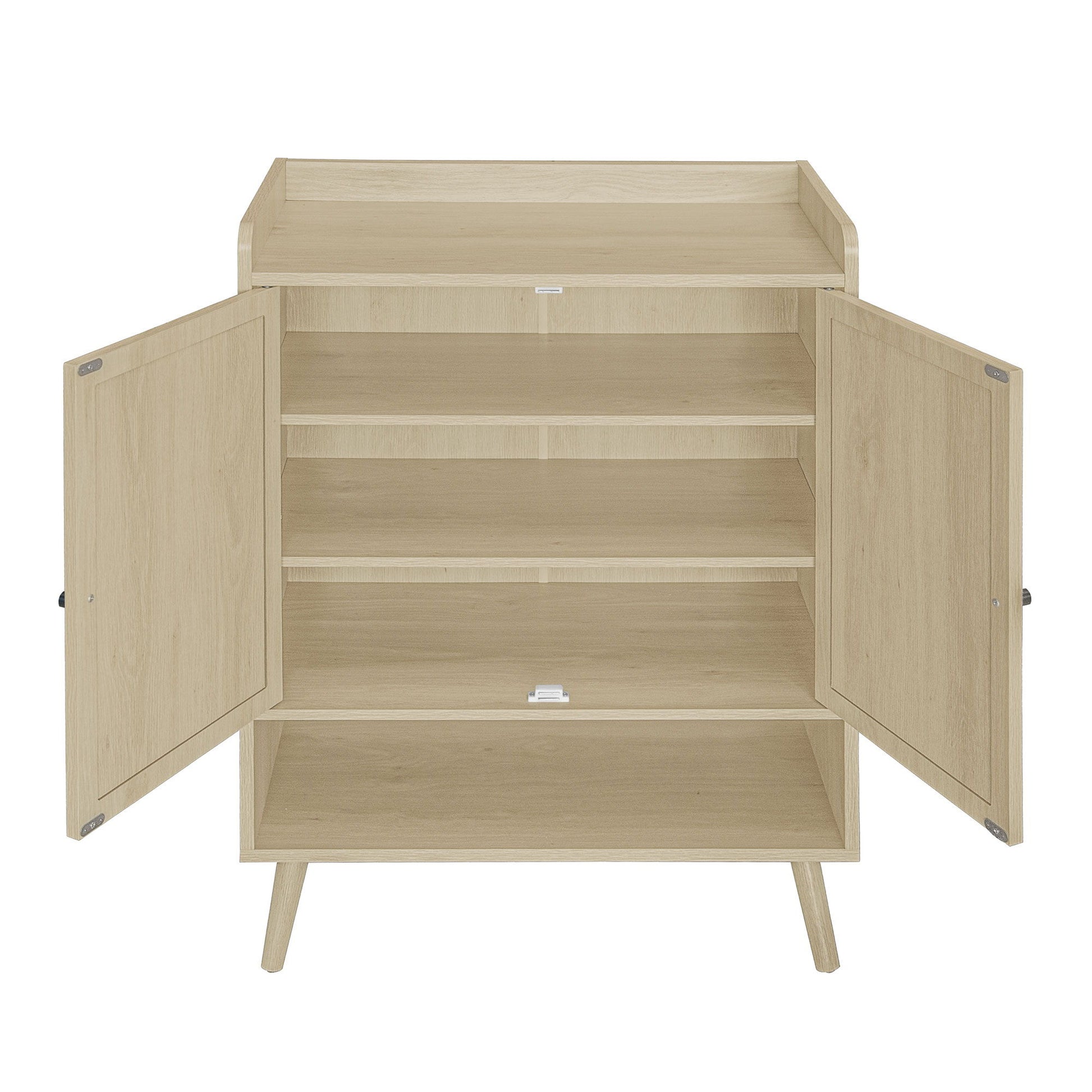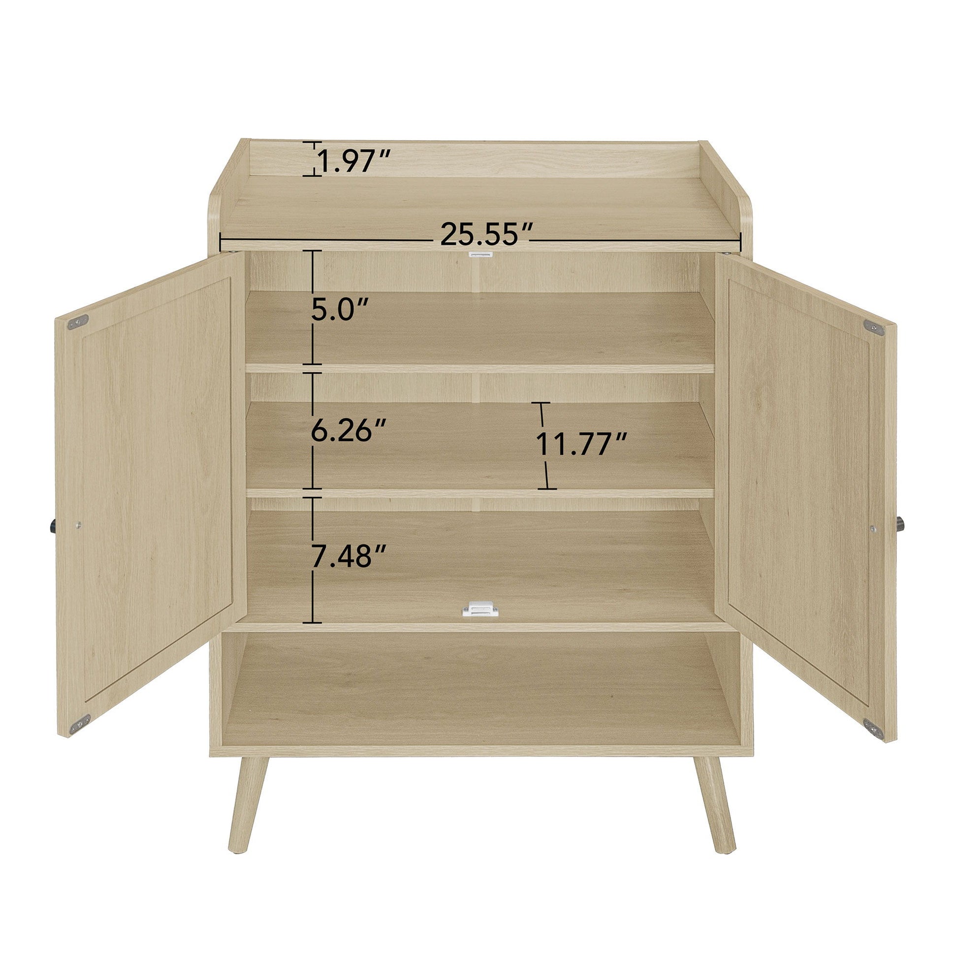 2 Door Shoe Rack, Freestanding, Modern Shoe Storage Cabinet, For Entryway - Natural