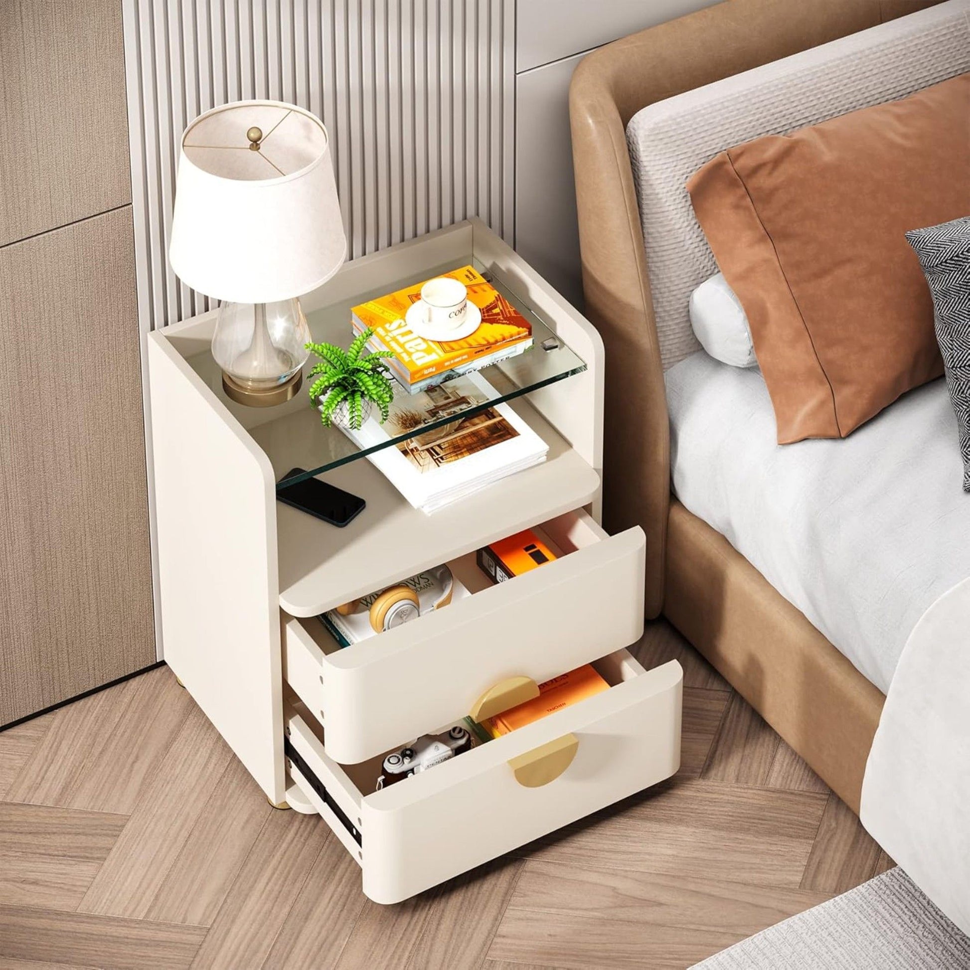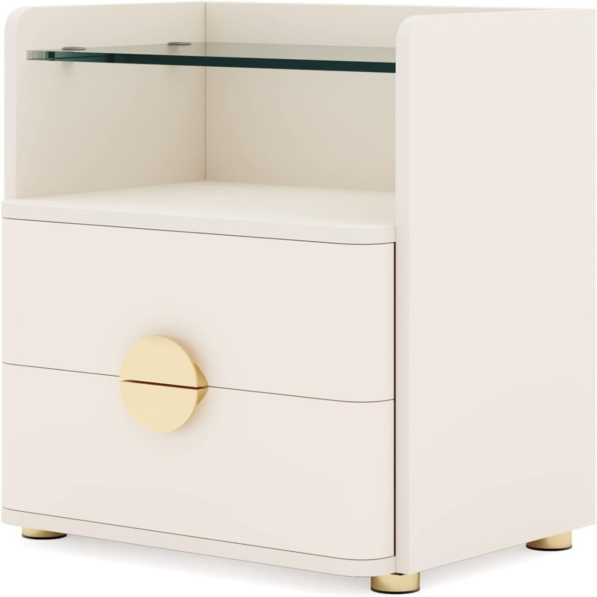 2 Drawer Nightstand With Open Shelf, Bedside Table - Beige