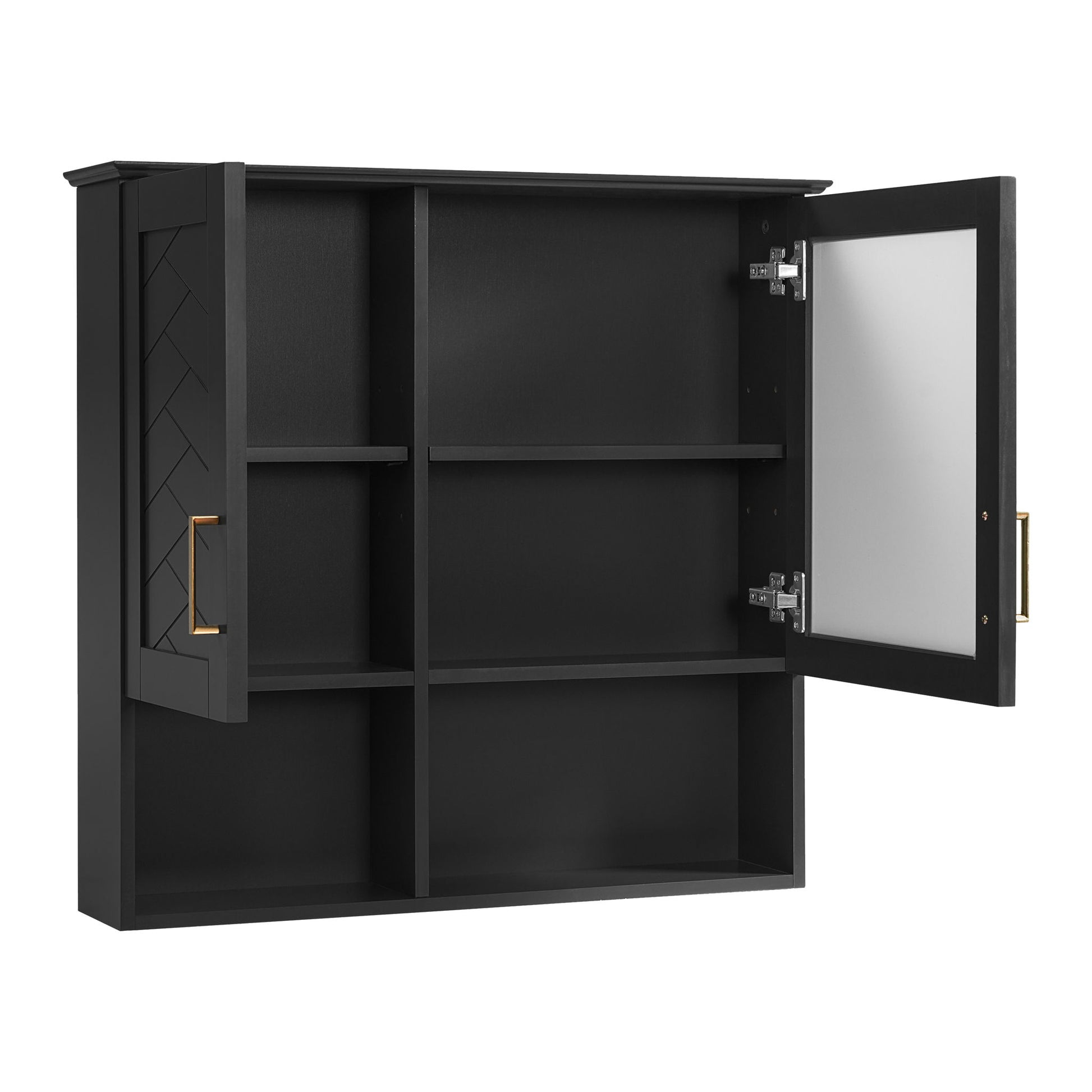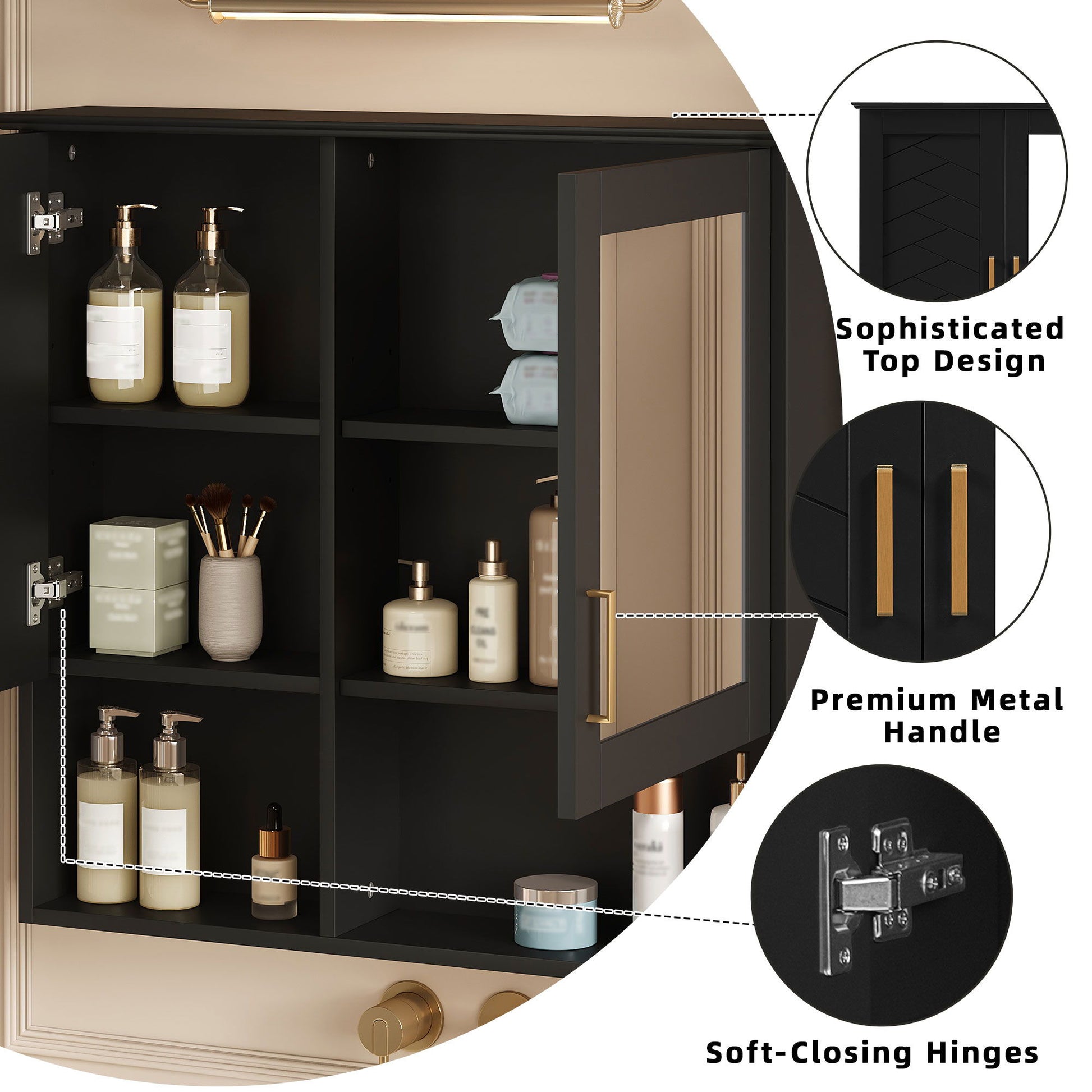 2 In 1 Wall-Mounted Mirror Cabinet With Adjustable Shelves, Soft-Close Doors, High-Definition Mirror & Storage - Black