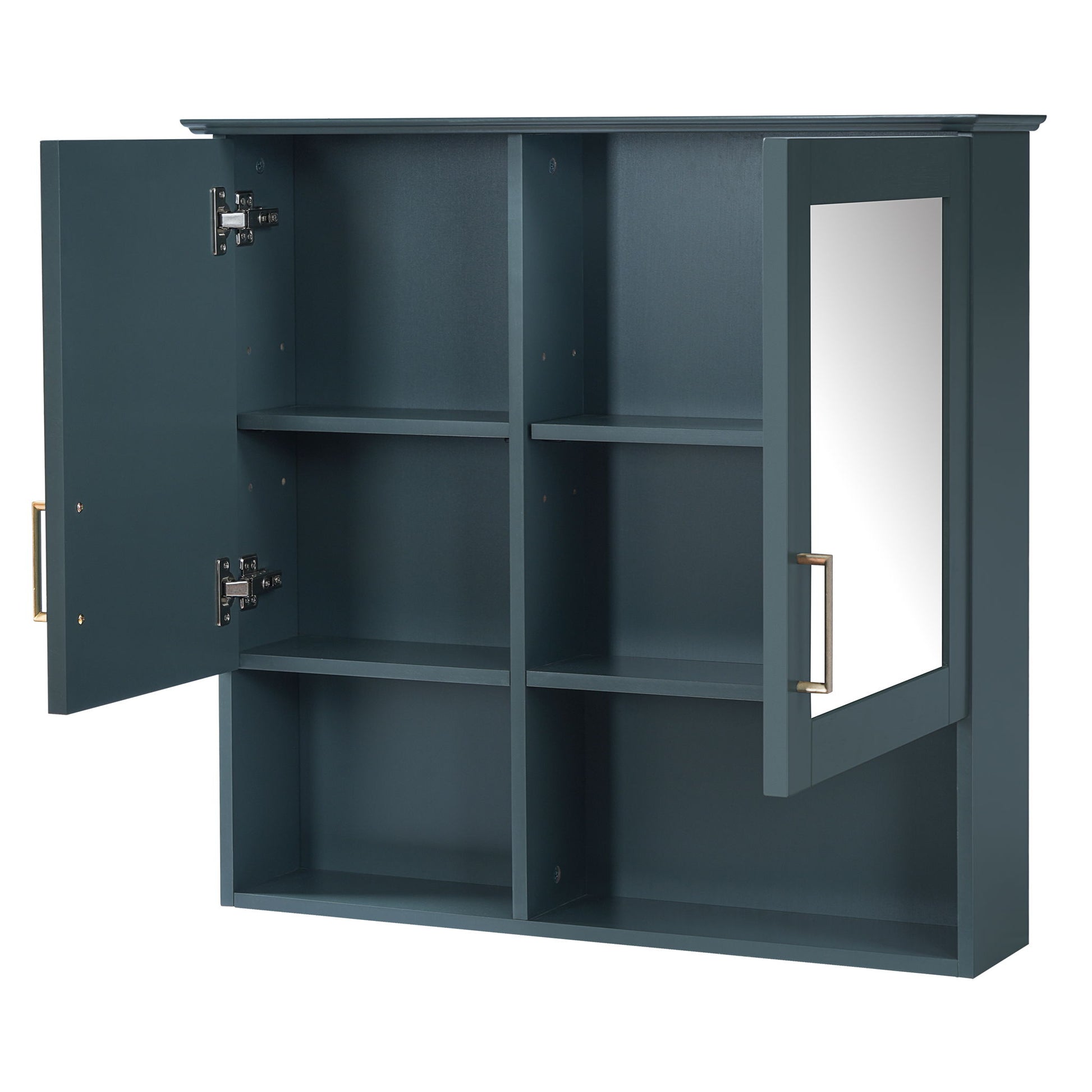 2 In 1 Wall-Mounted Mirror Cabinet With Adjustable Shelves, Soft-Close Doors, High-Definition Mirror & Storage - Blue