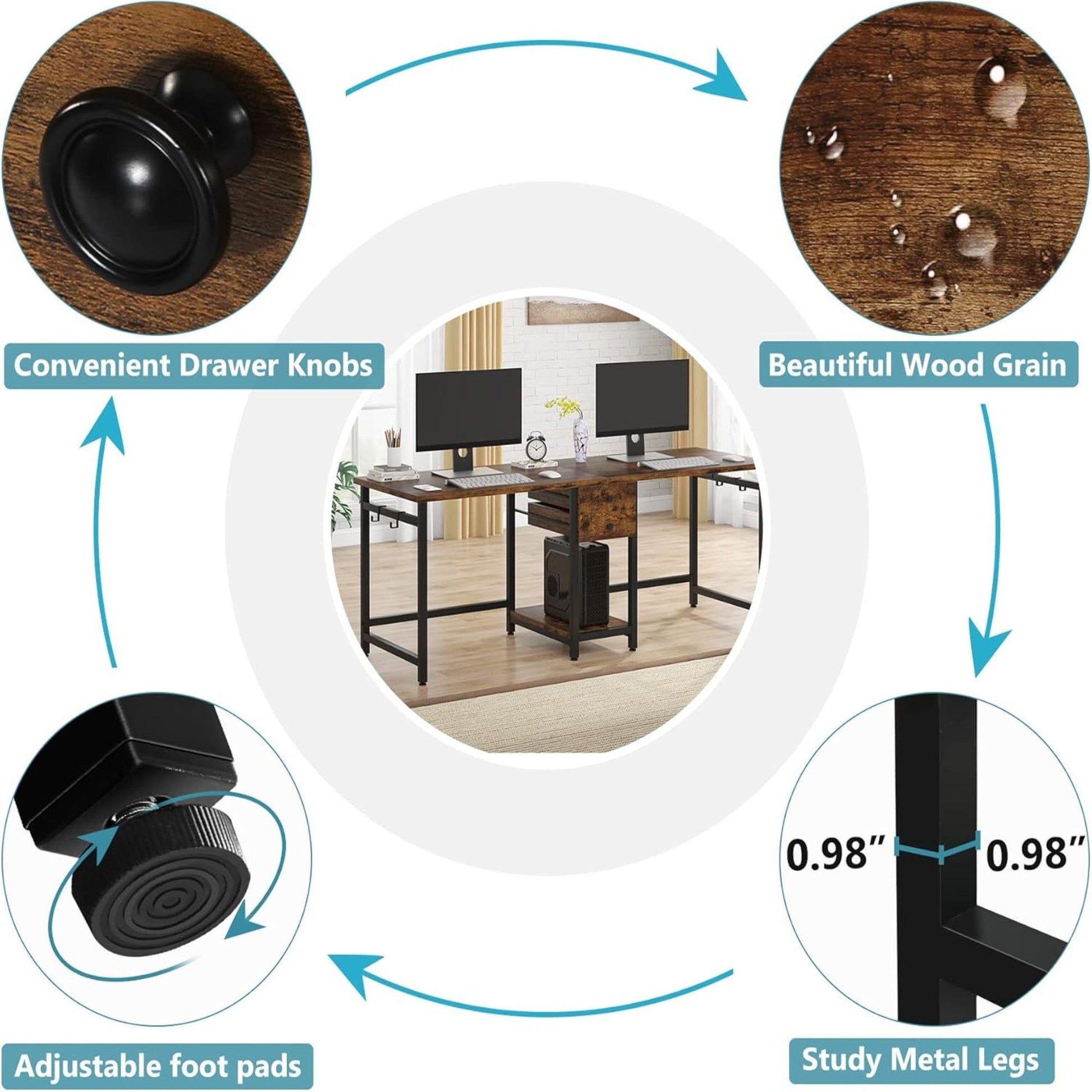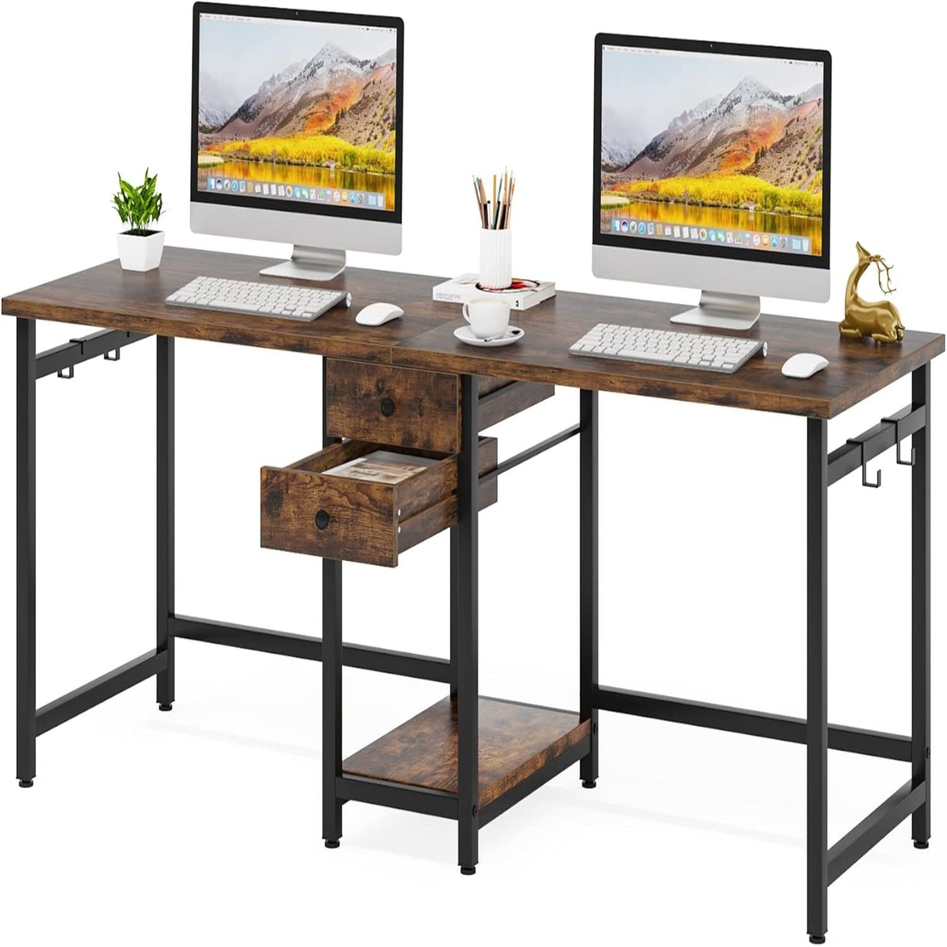 - Smart Storage Integration: Includes two drawers, central shelf, and four side hooks for organizing devices, documents, and personal items.