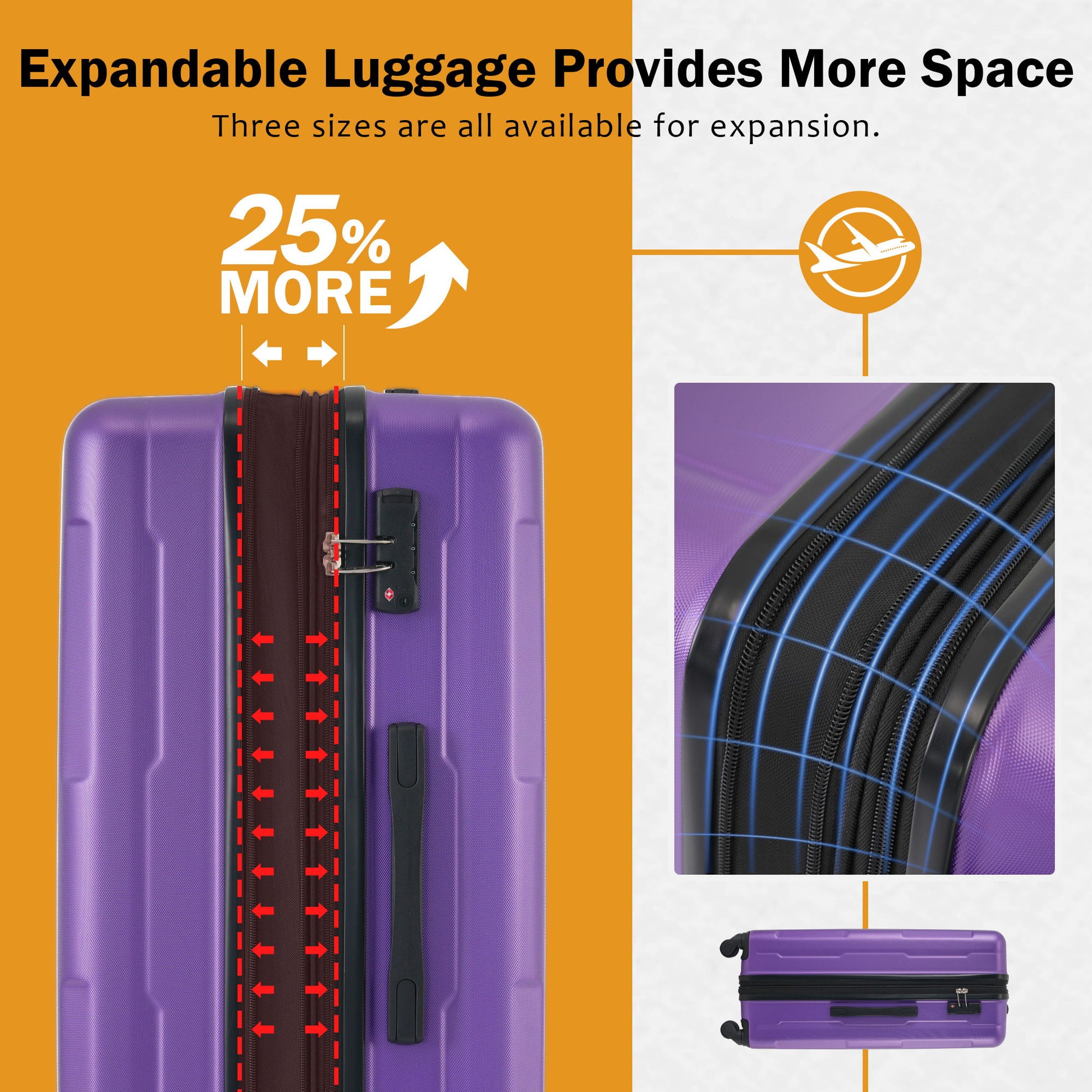 Spacious & Organized Packing : The suitcase features a built-in expandable feature, allowing you to increase packing space by 25%. The luggage interior also features elastic cross over straps and mesh pockets for easy organization.