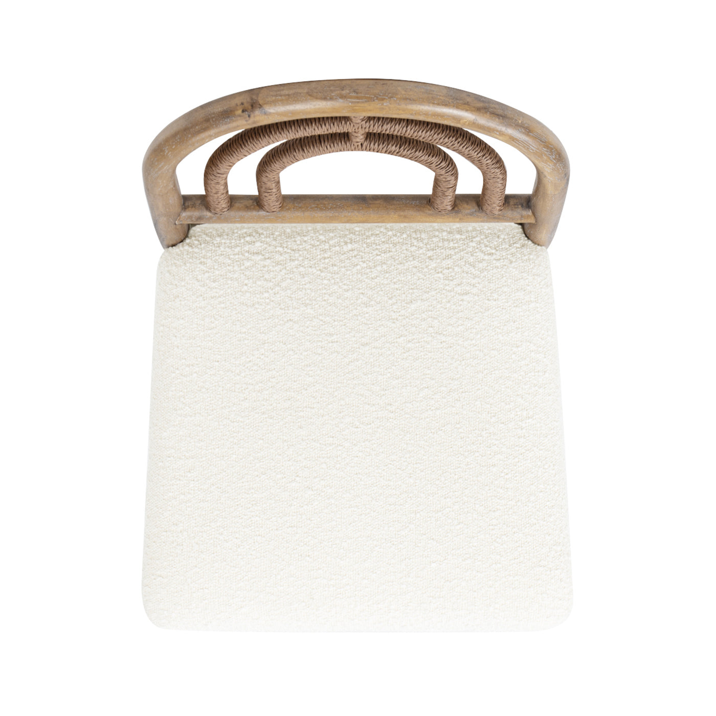 - Unique arched wood back wrapped in rope for added texture