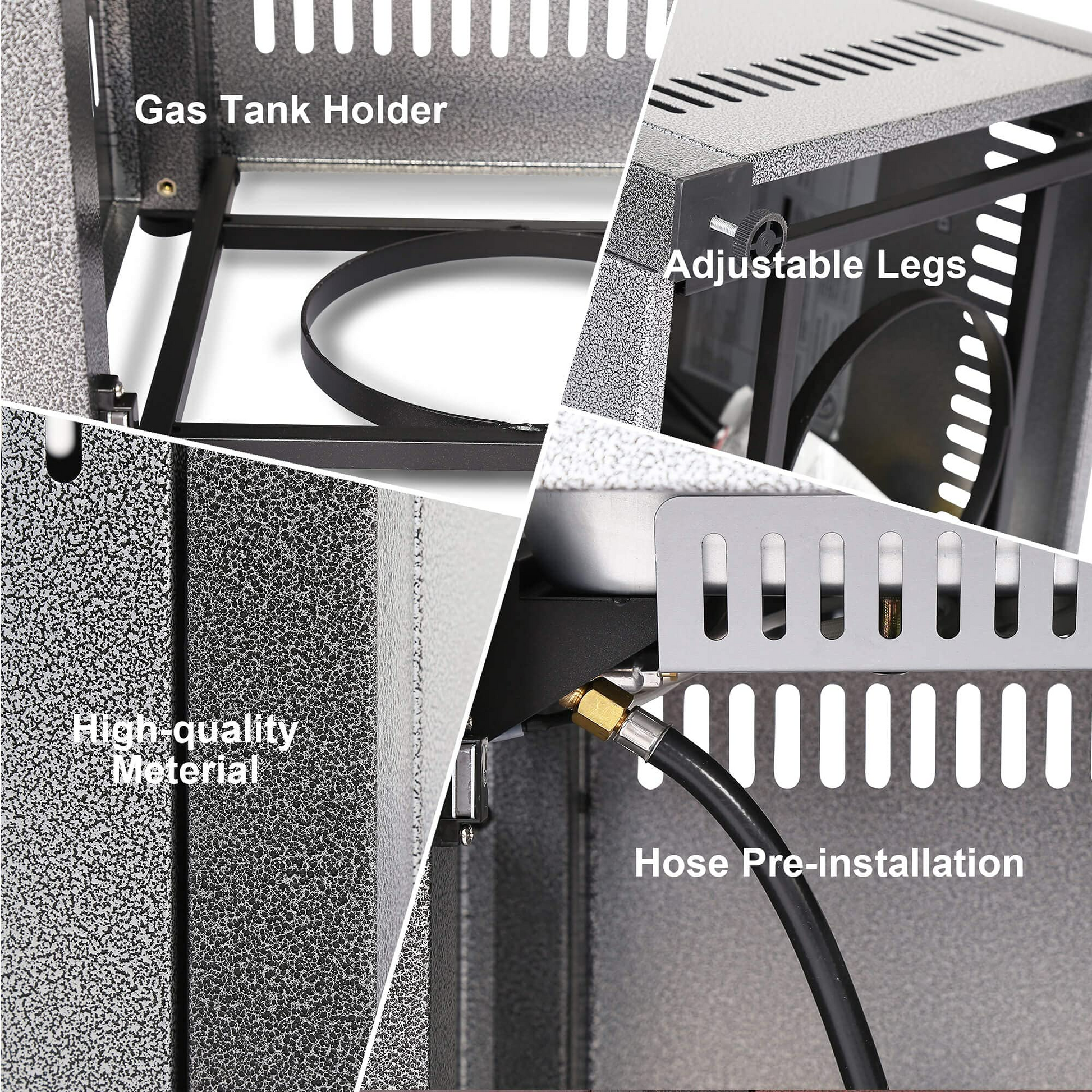 - Features a 50000 BTU propane burner providing ample heat