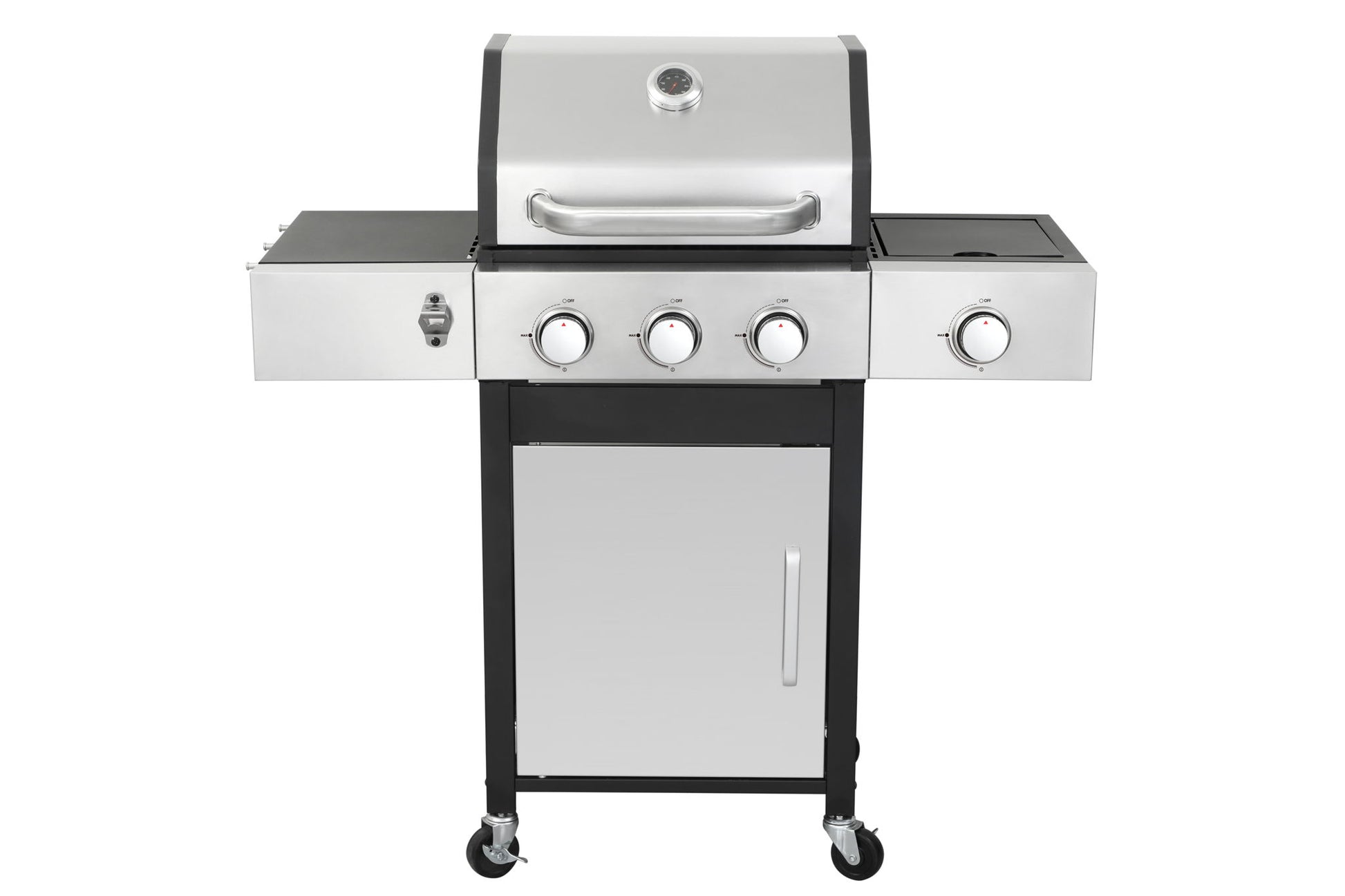 3 Burner Propane Gas Bbq Grill With Side Burner, 37230Btu Output With Enameed Cast Iron Cooking Grids For Outdoor Barbecue, Stainless Steel - Black / Silver