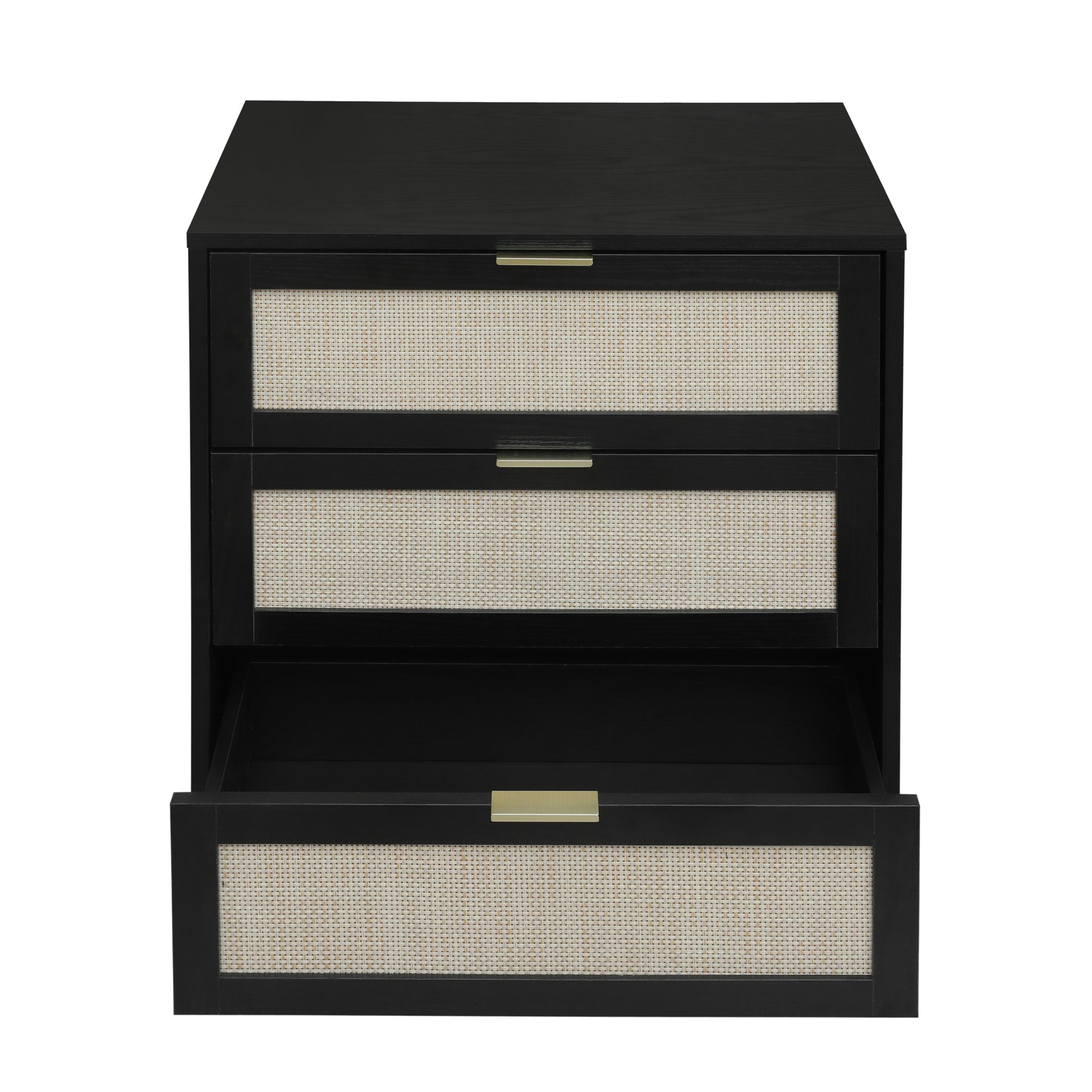 This 3 Drawer Cabinet is designed for versatile use as a bedside or sofa side table, combining practical storage with a stylish rattan finish suitable for living rooms and other interior spaces.