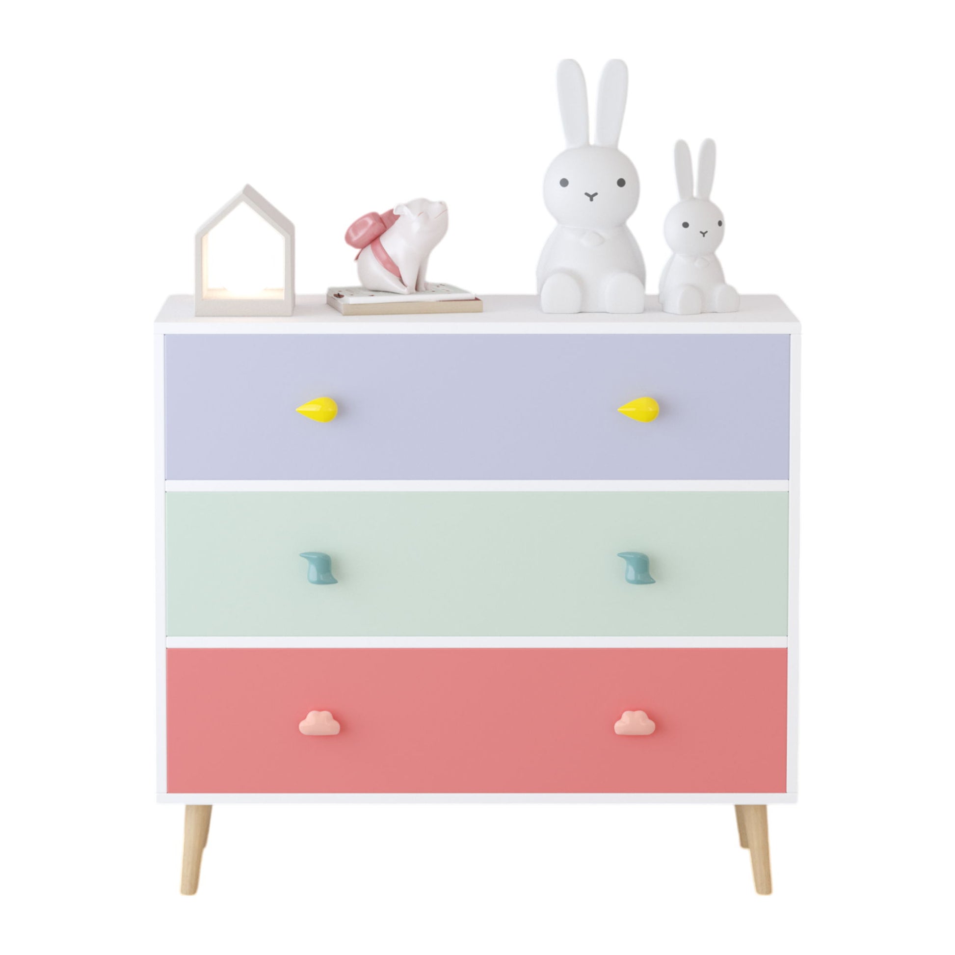 Kids 3 Drawer Dresser, Storage Cabinet With Anti Tip Safety For Toddler Room - Colorful