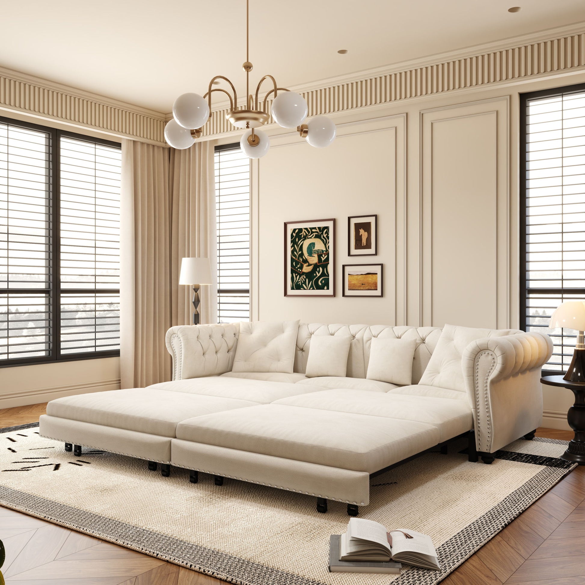 3 In 1 Convertible Sleeper Sofa Bed With Movable Ottoman