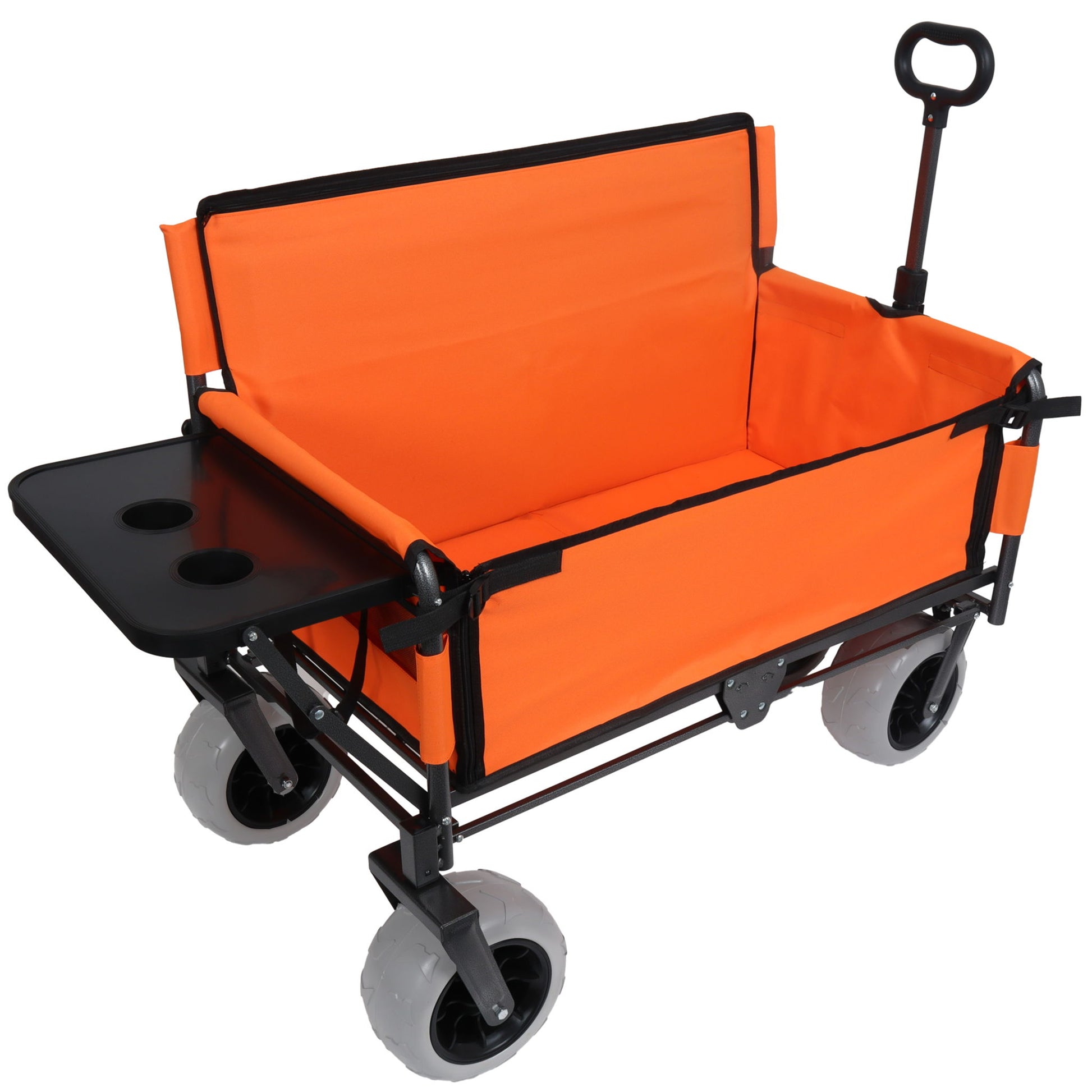 3 In 1 Folding Wagon With Bench Seat & Rear Mounted Tabletop - Orange