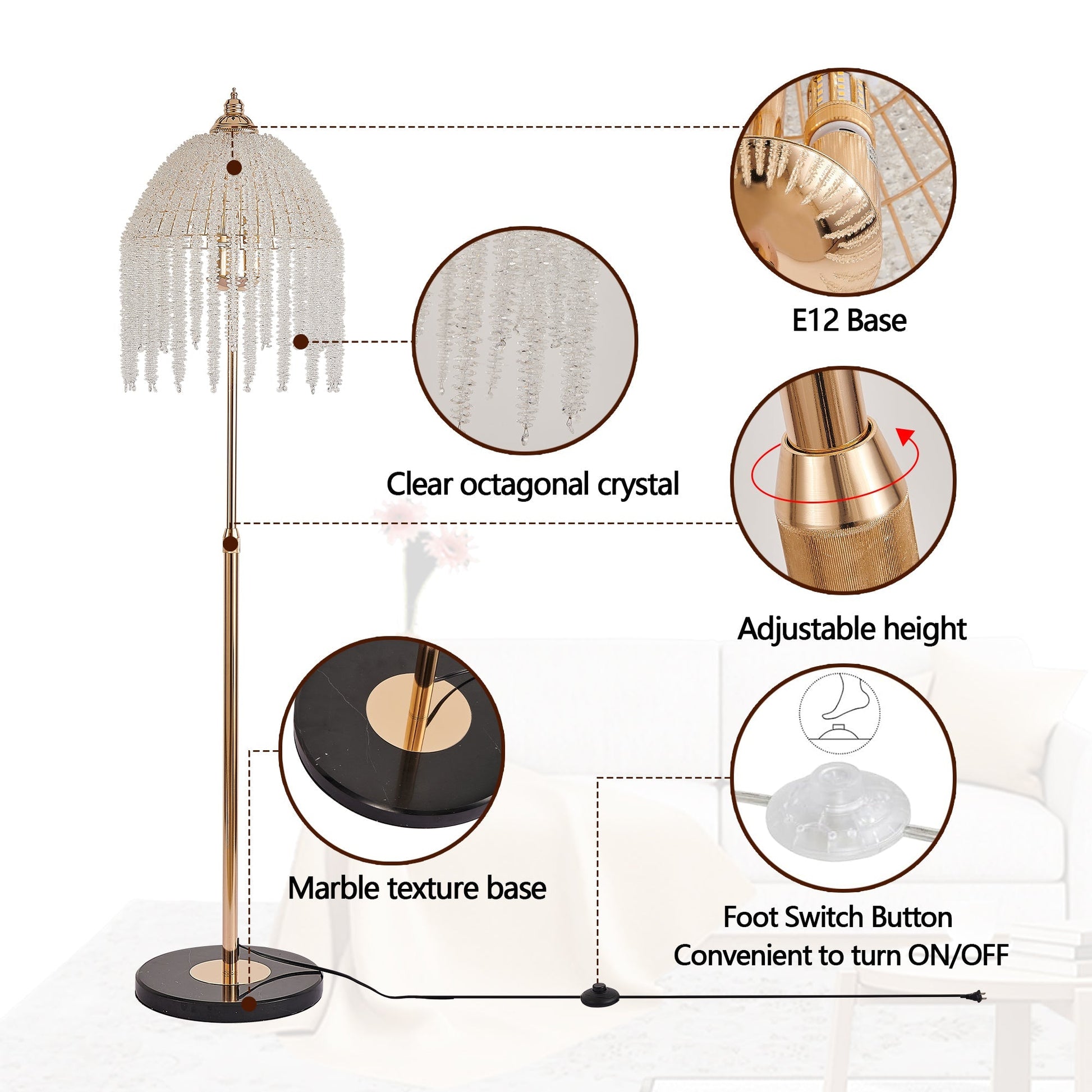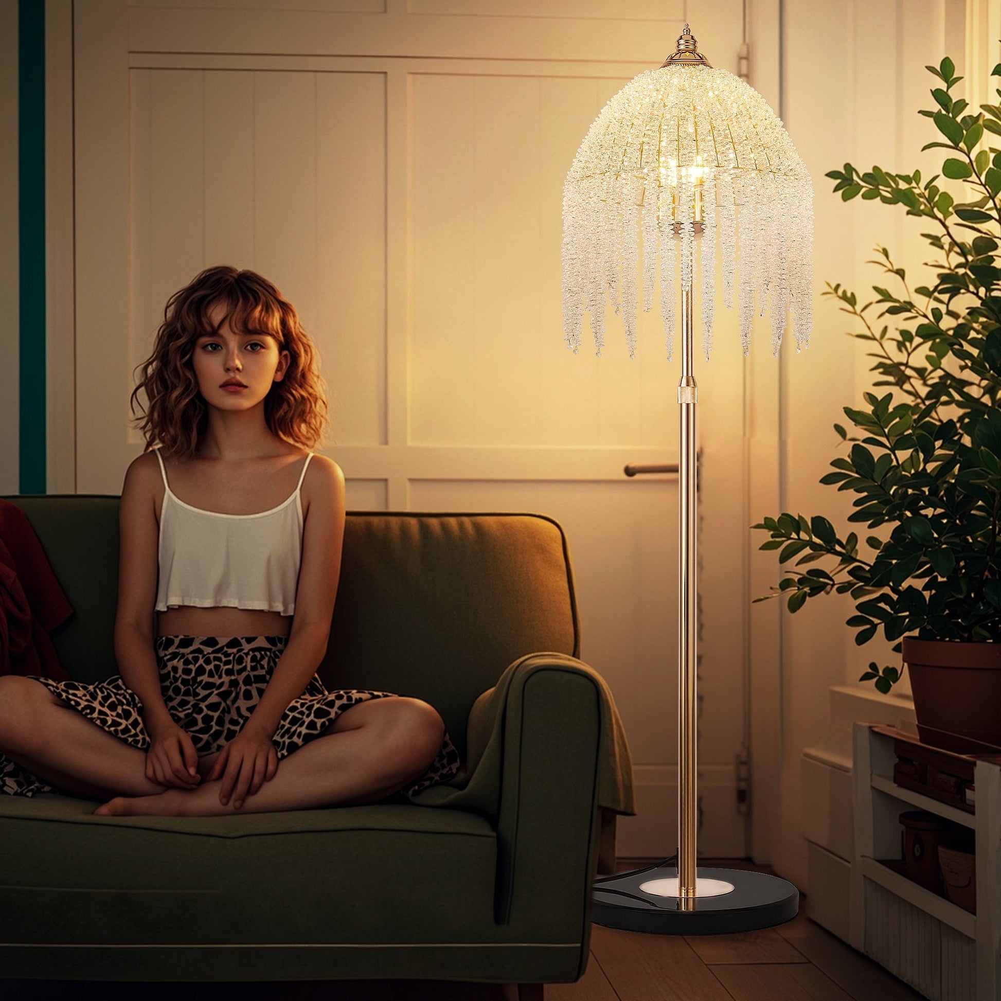 This elegant 3-light floor lamp features a vintage waterfall design with cascading crystal beads. Perfect for enhancing the ambiance of living rooms, bedrooms, or office spaces with both function and style.