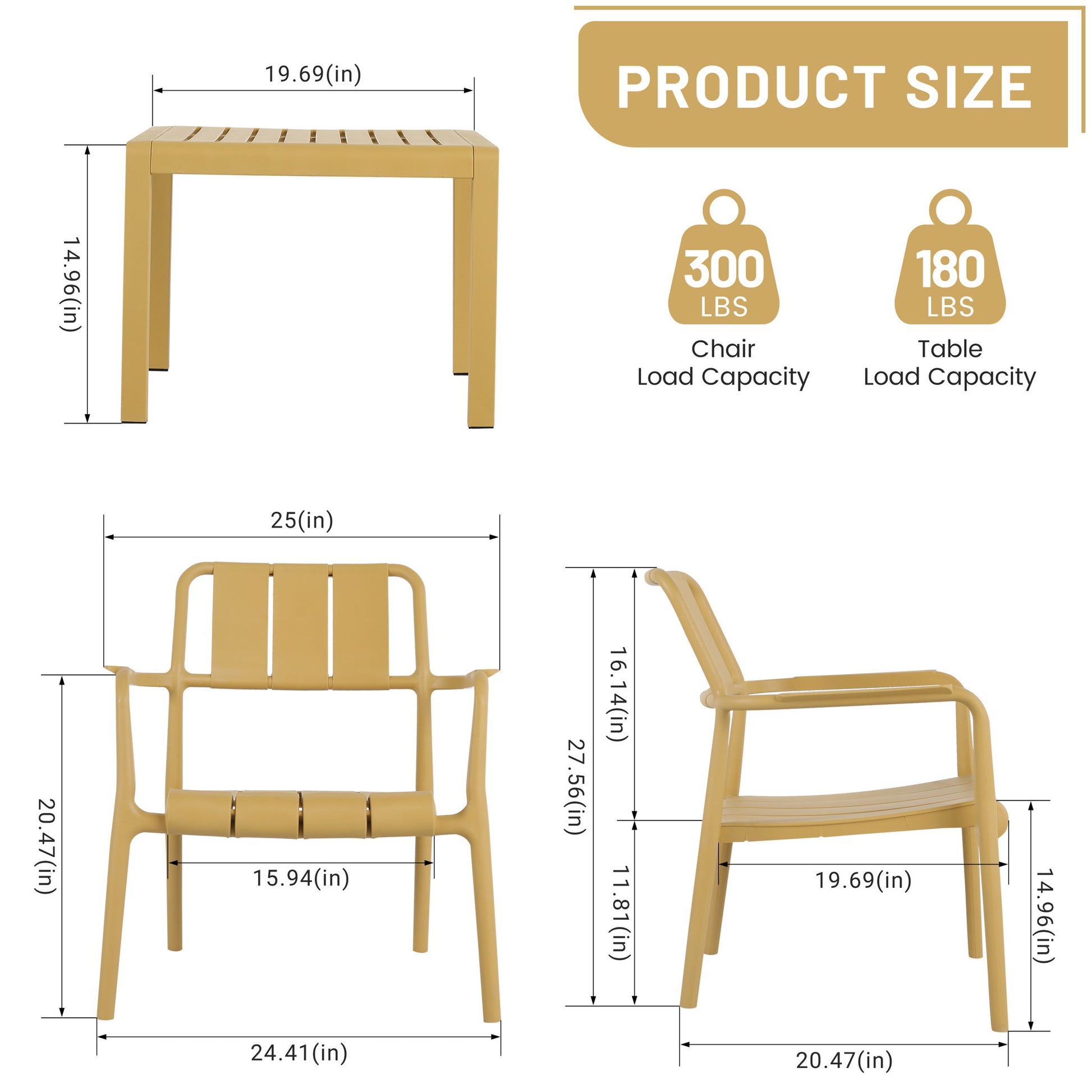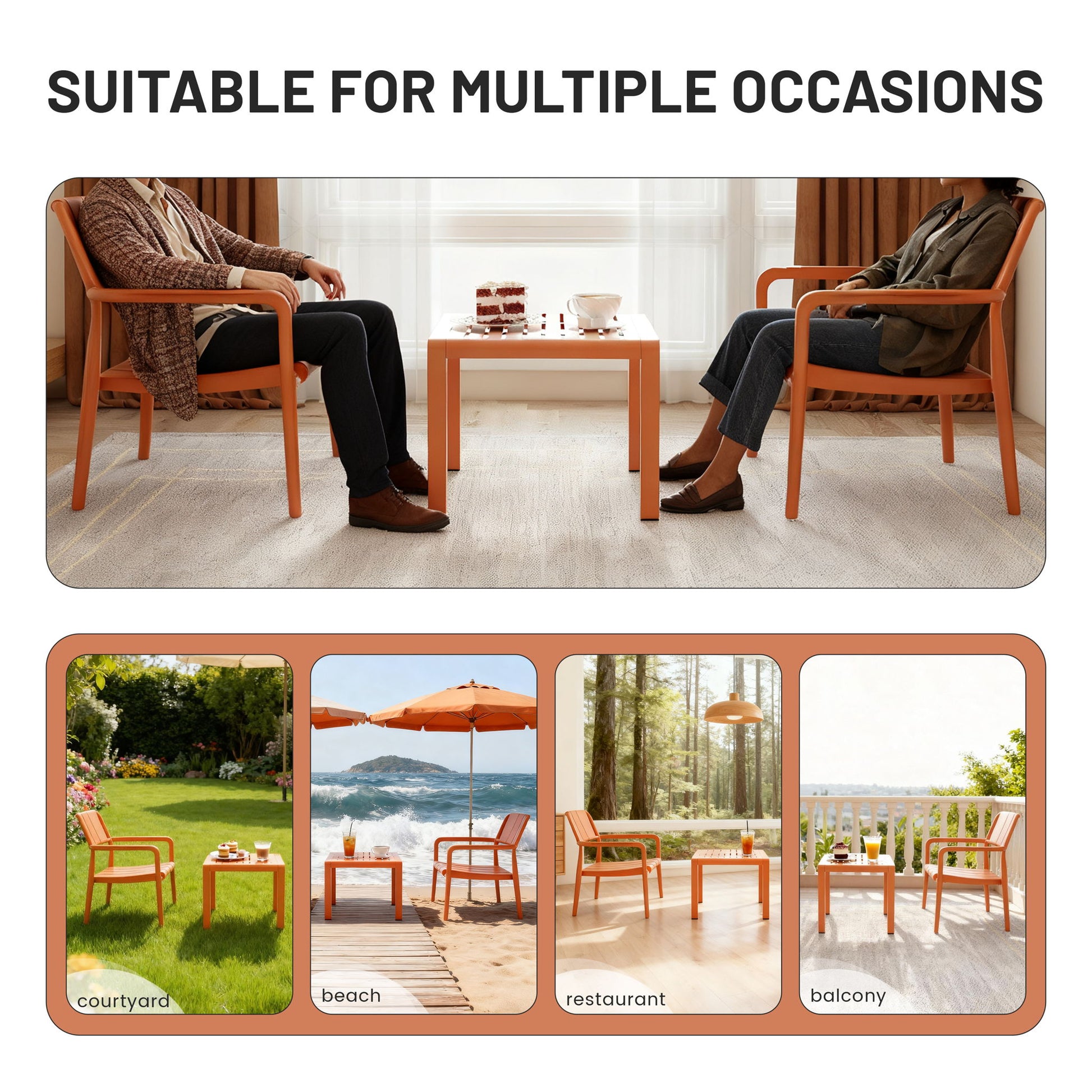 3 Piece Indoor / Outdoor Leisure Table And Chair Set (2 Chairs And 1 Coffee Table), UV Resistant, Waterproof And Durable - Brick Yellow