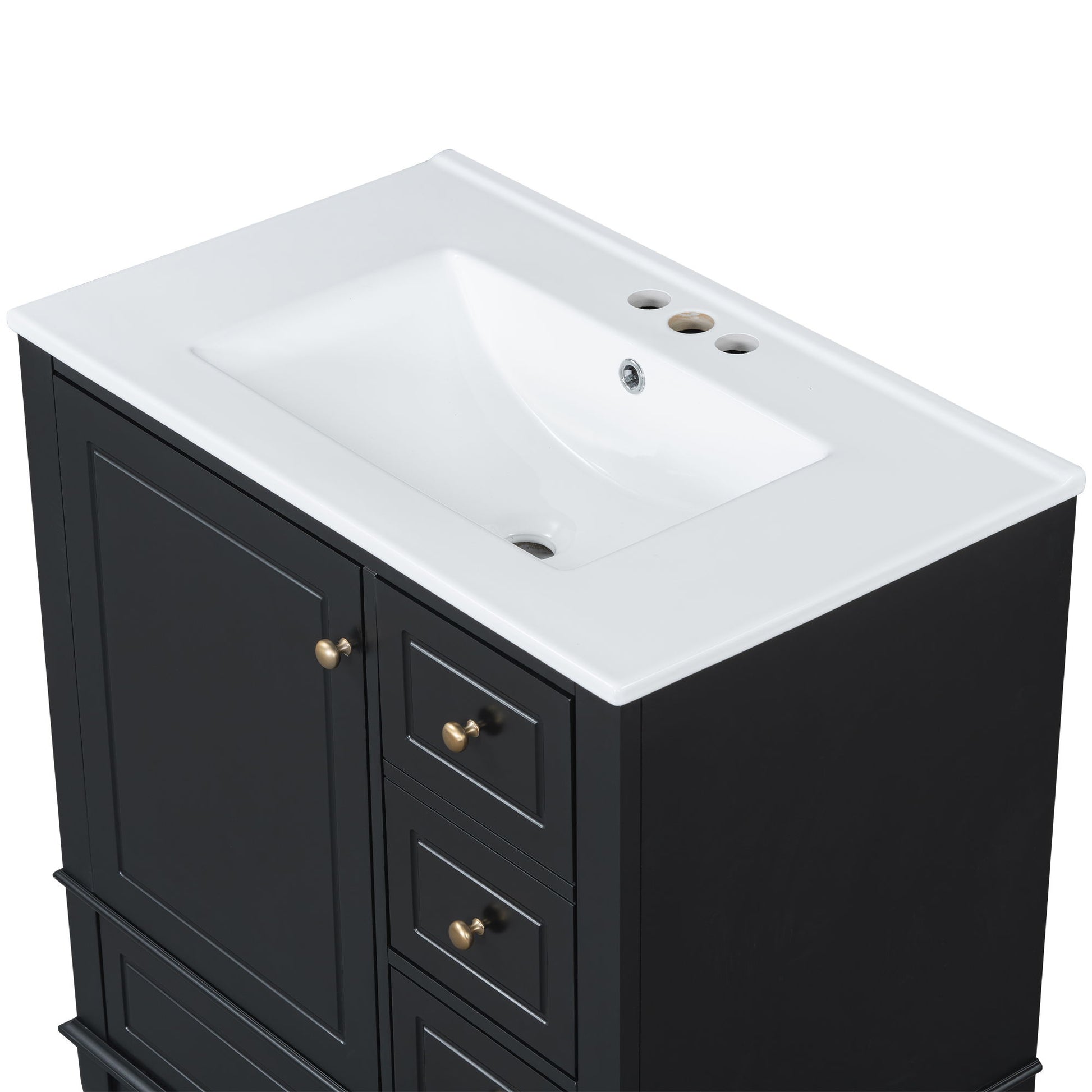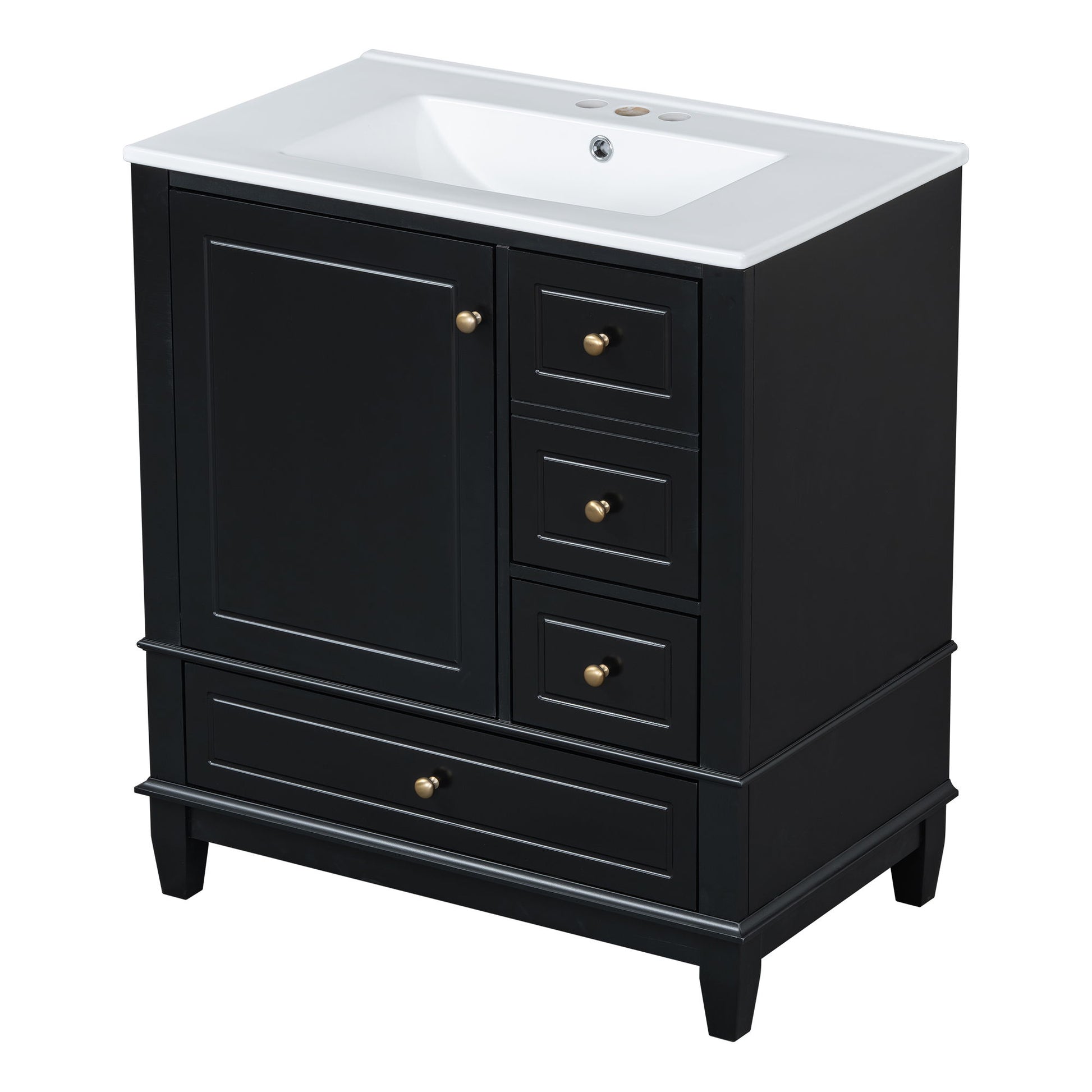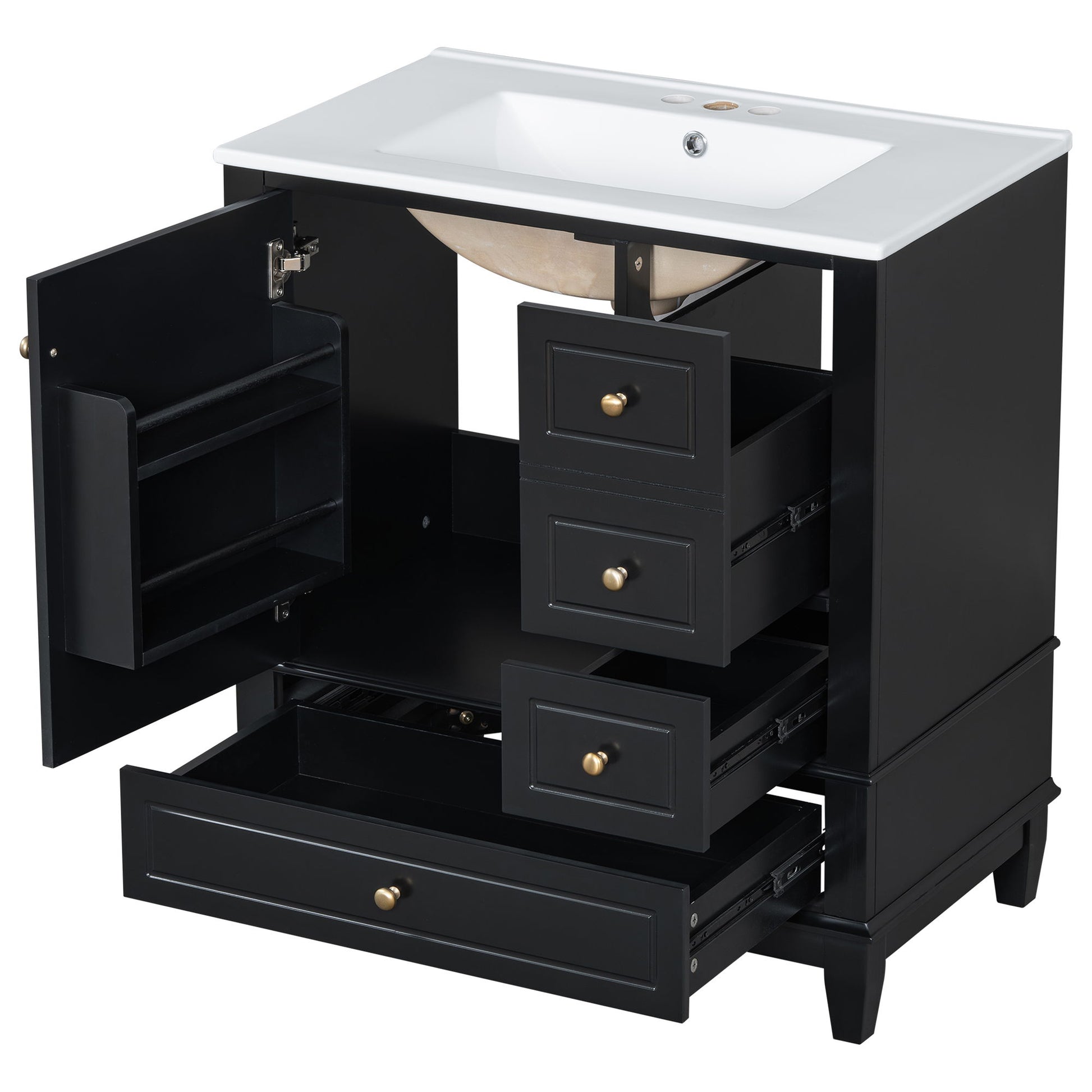 30" Bathroom Vanity With Sink, 1 Door With Shelf And 3 Drawers, Soft Close Door - Black