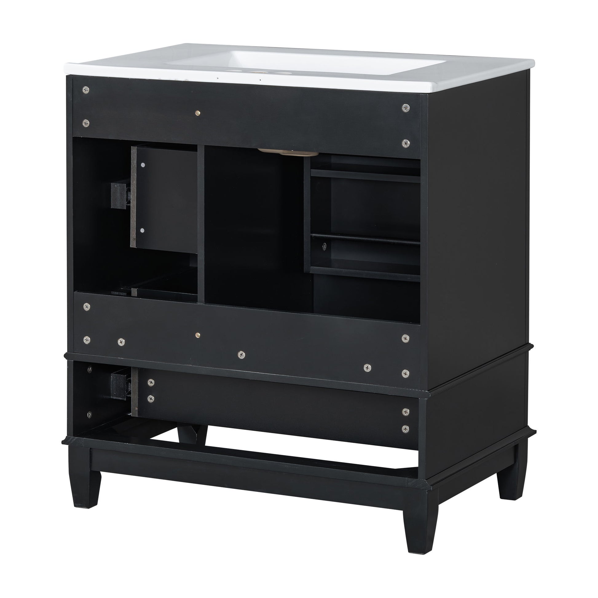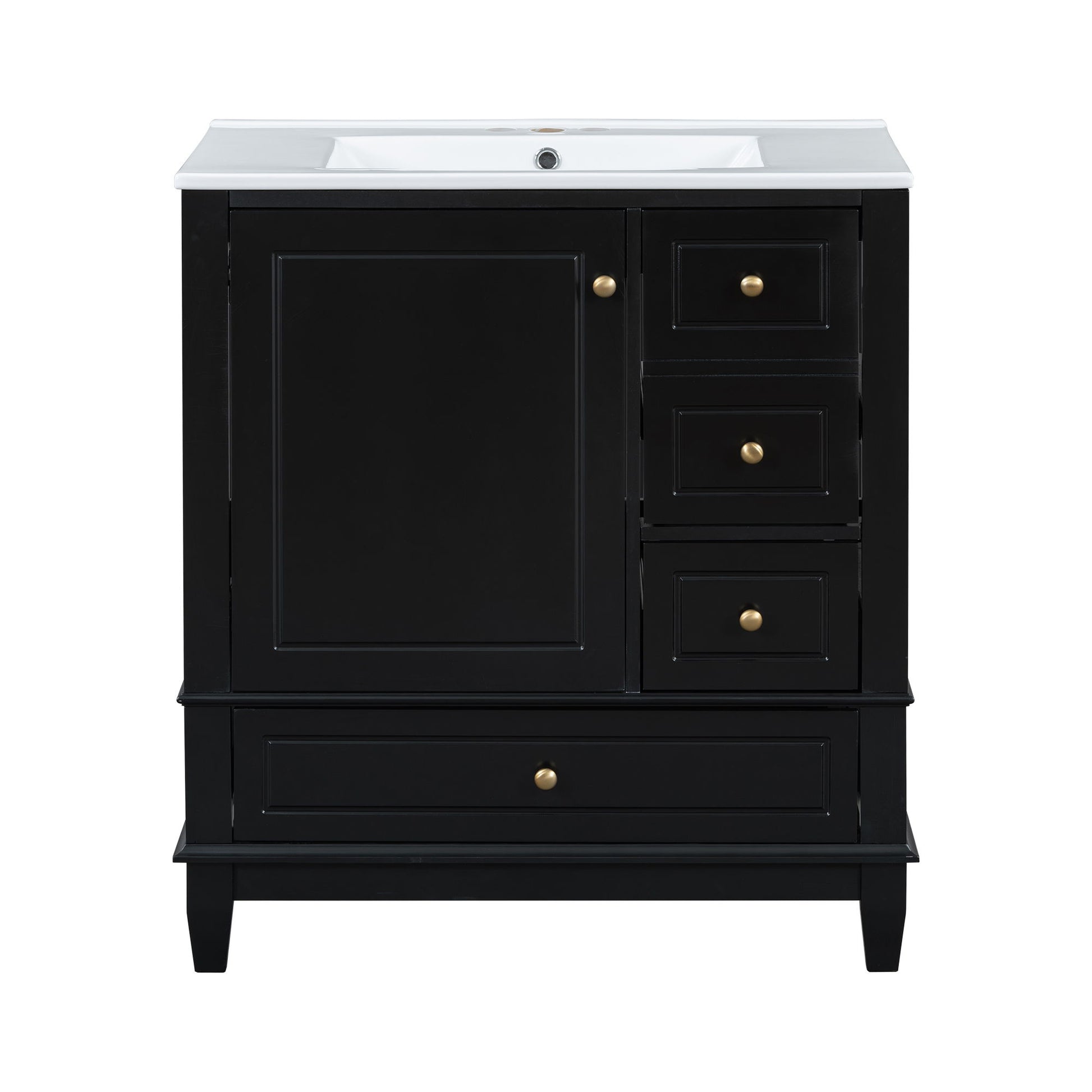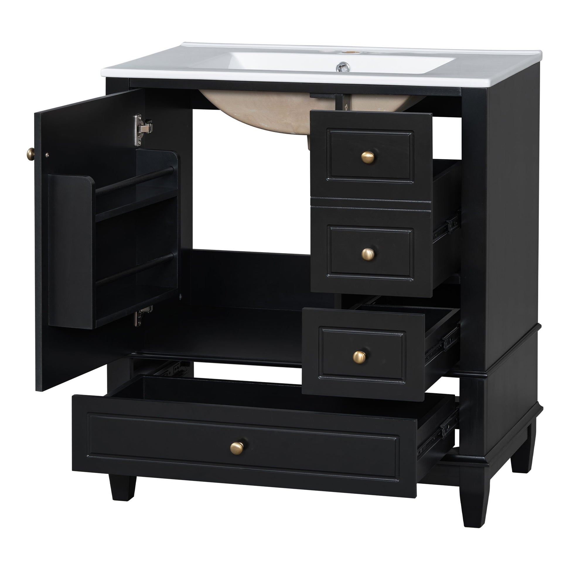 30" Bathroom Vanity With Sink, 1 Door With Shelf And 3 Drawers, Soft Close Door - Black