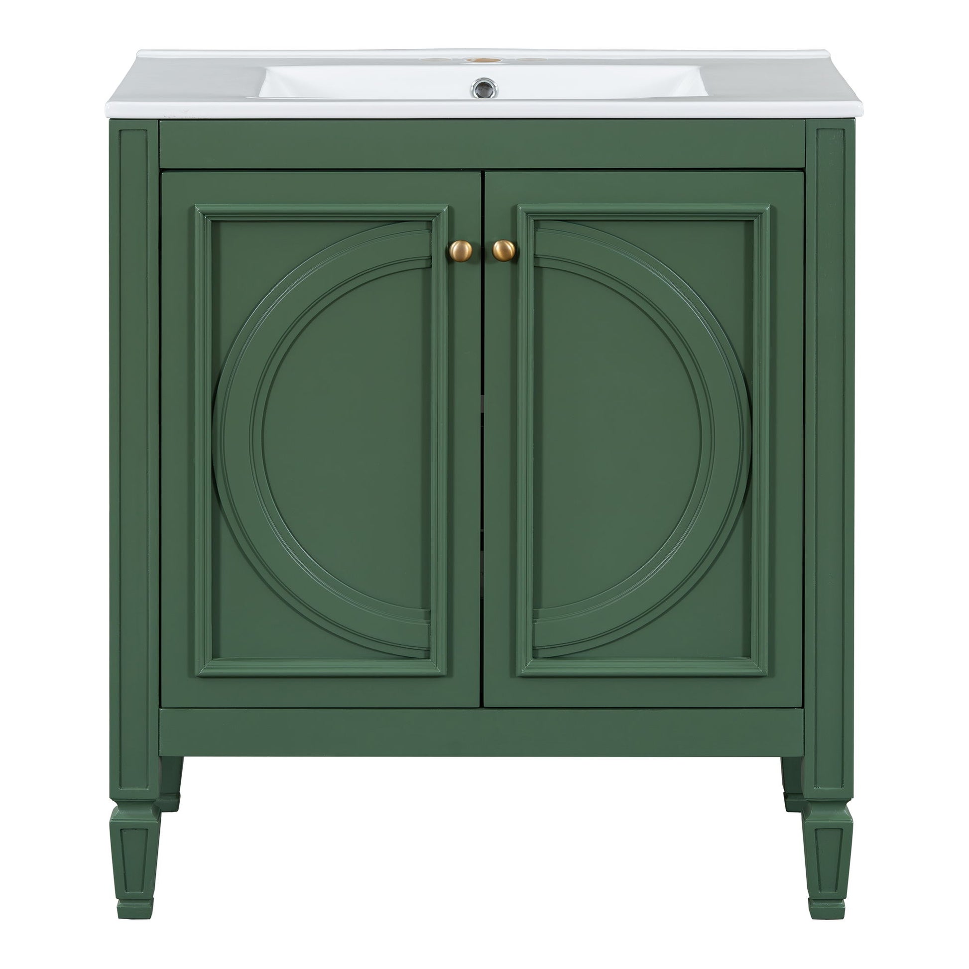 30" Bathroom Vanity With Sink, 2 Doors With Shelf, Soft Close Door Hinges, Vintage Style - Green