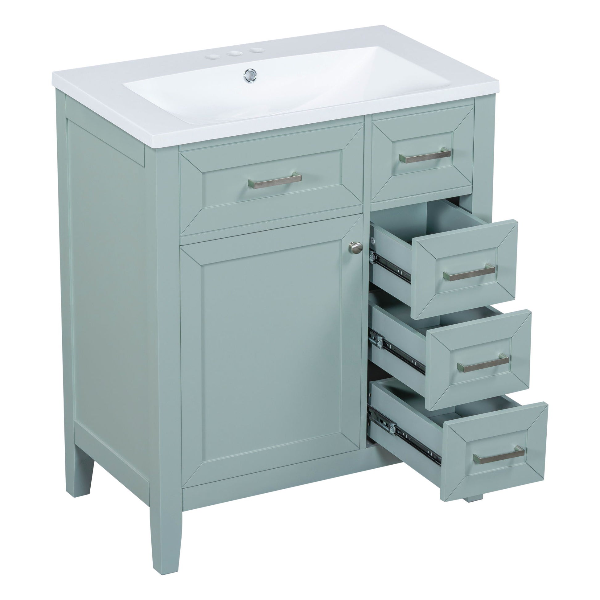 30" Bathroom Vanity With Sink Combo, Bathroom Cabinet With Drawers - Green