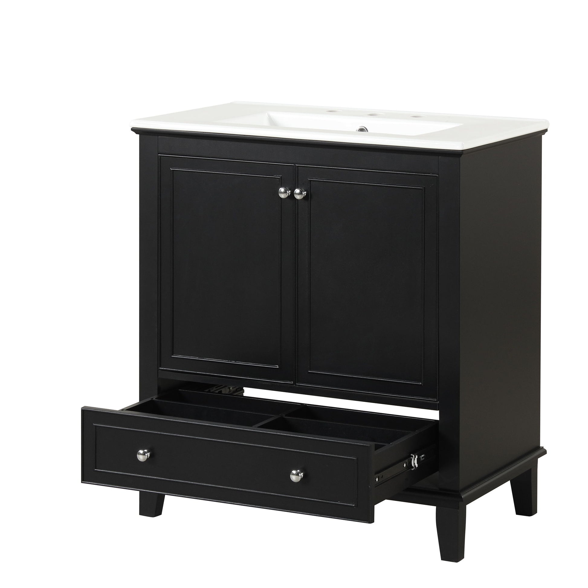 30" Bathroom Vanity With Sink Combo, Multi Functional Bathroom Cabinet With Doors And Drawer - Black