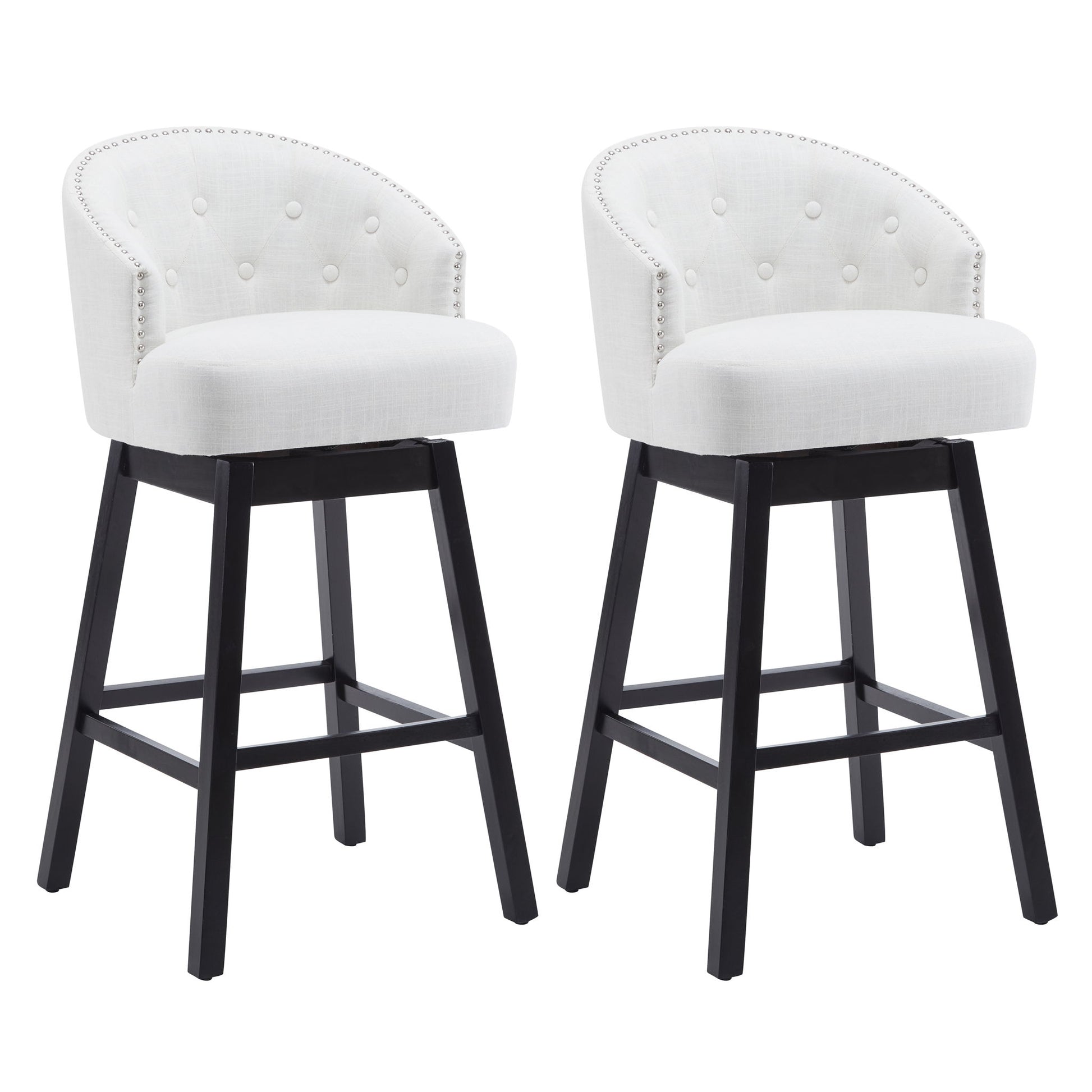 Swivel Counter Stools (Set of 2), Upholstered Counter Height Bar Stools With Solid Rubber Wood Frame, Backrest, Footrest, Armless Barstools For Home Bar, Kitchen Counter - Natural / Beige