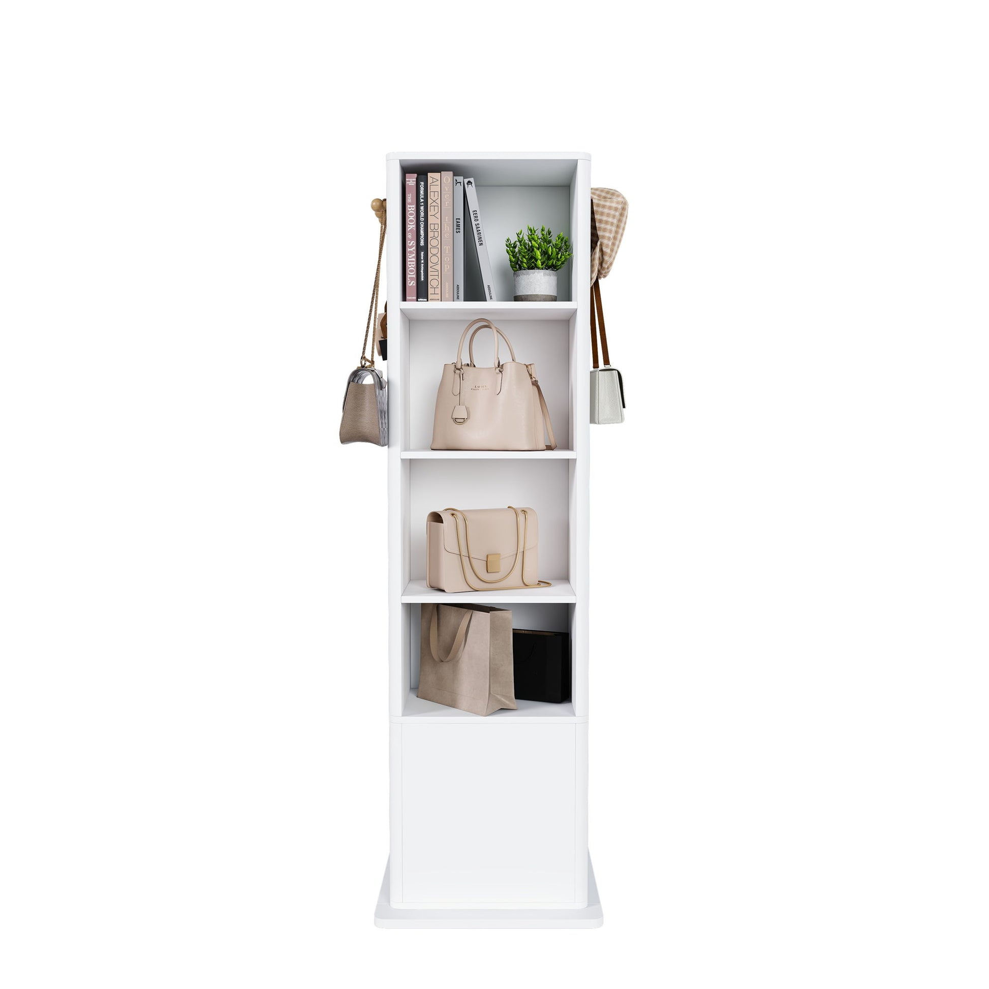 360 Degrees Rotating Makeup Cabinet With Full-Length Mirror, Jewelry Storage - White