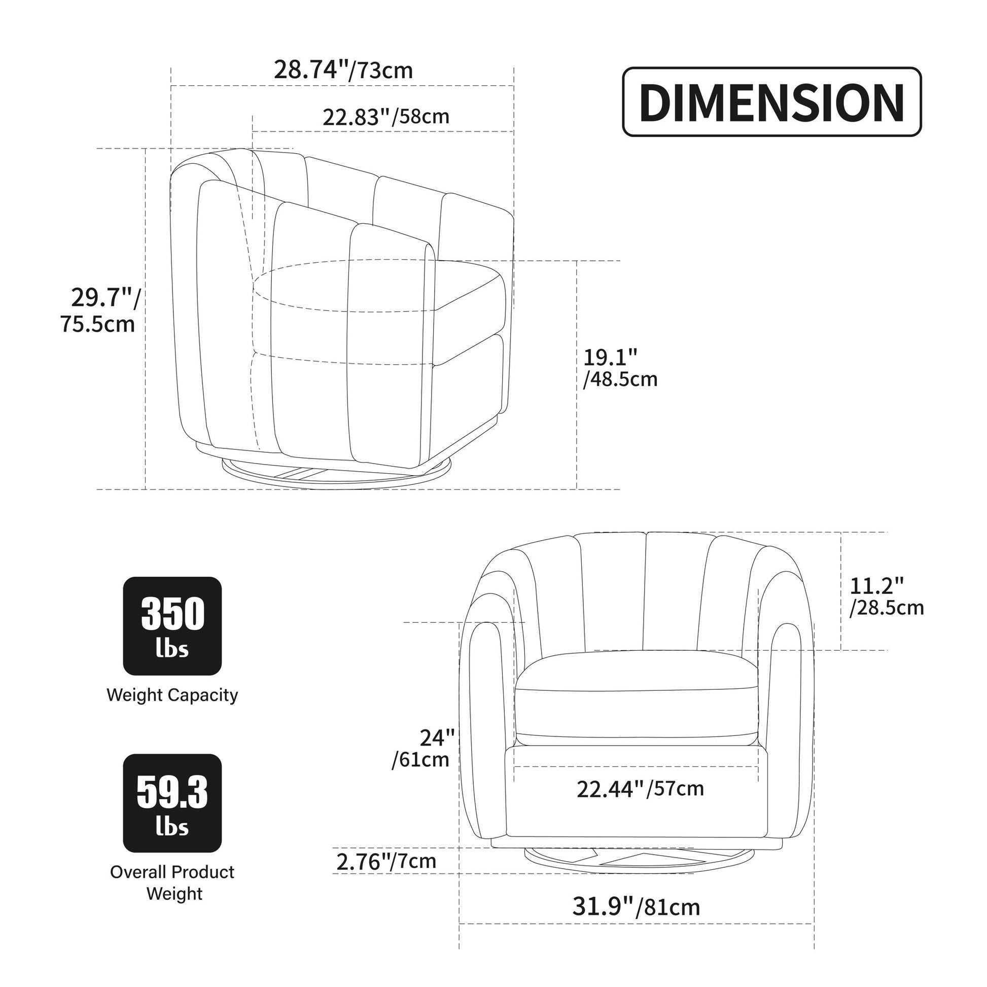 360 Degrees Swivel Upholstered Barrel Armchair For Living Room - Ivory