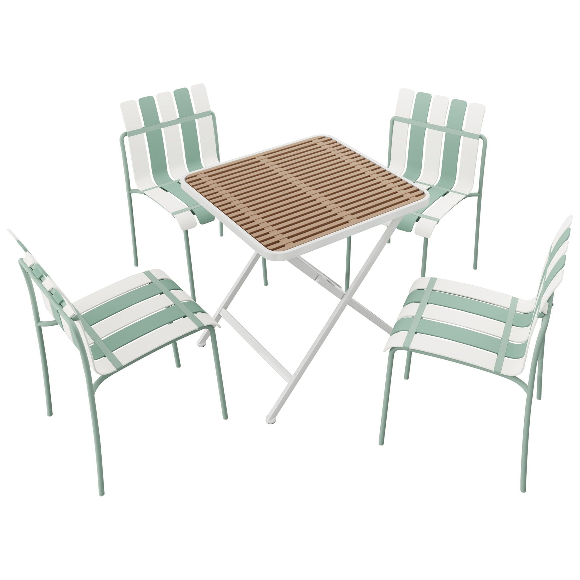 4 Piece Set Of Modern Color Block Designed Single Chairs With Folding Square Table
