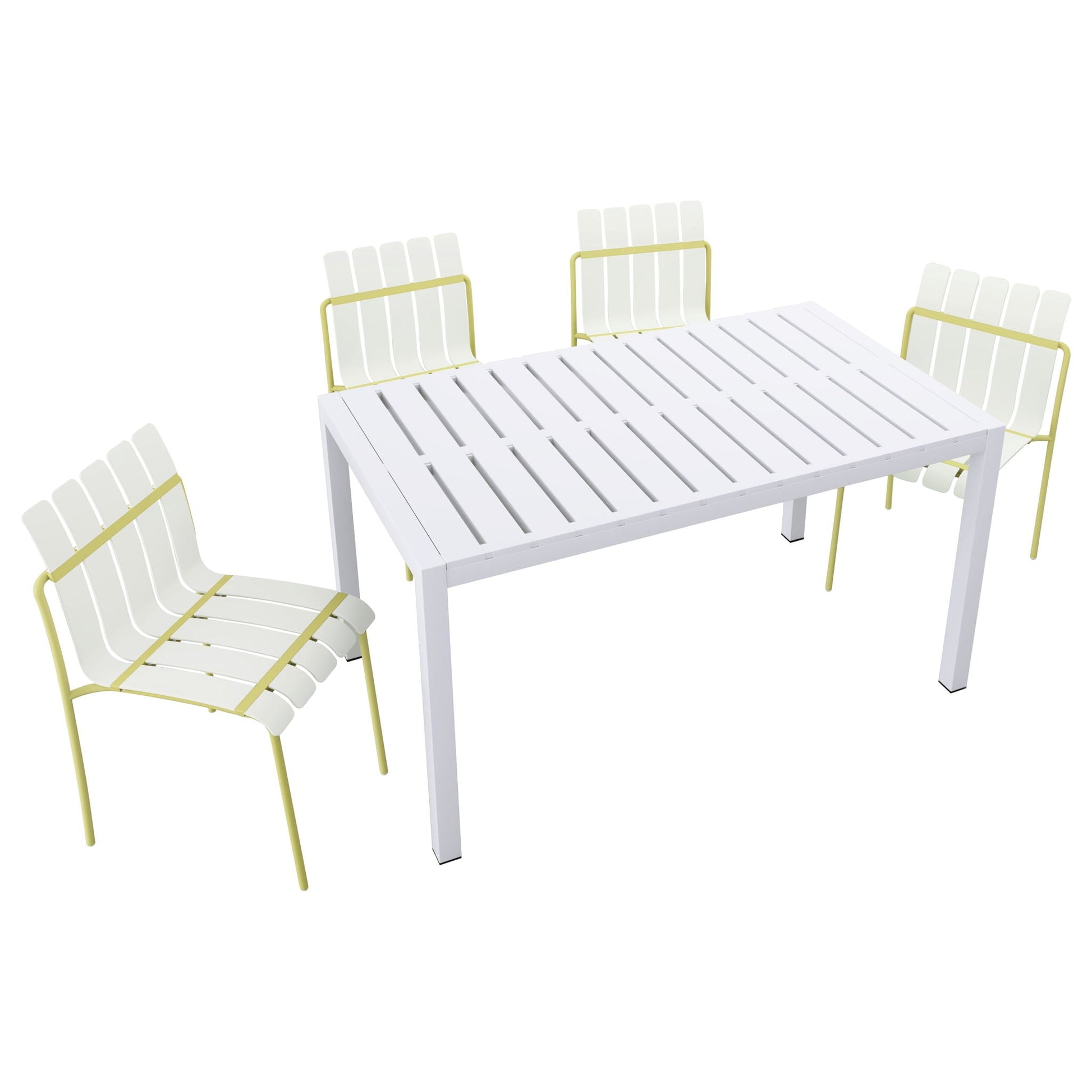 4 Piece Set Of Modern Color Block Designed Single Chairs With Long Table