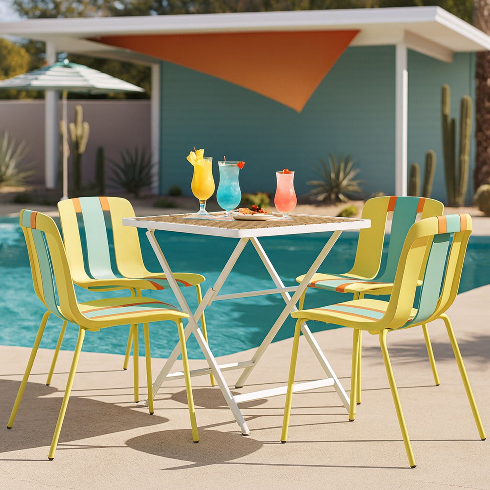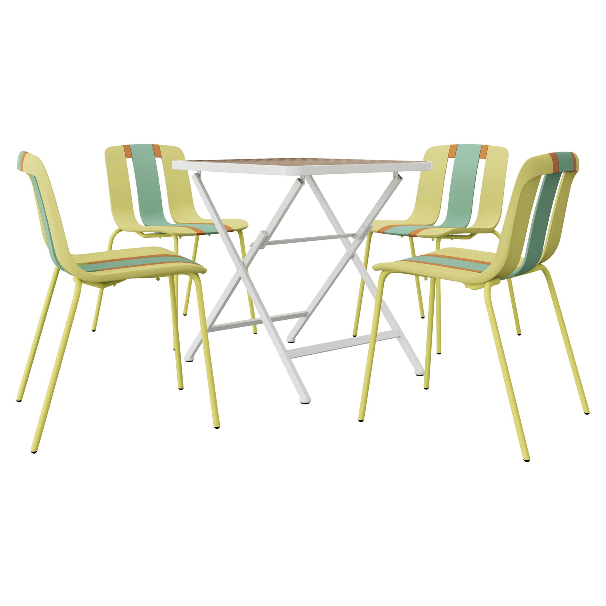 4 Piece Set Of Modern Striped Single Chairs With Folding Square Table