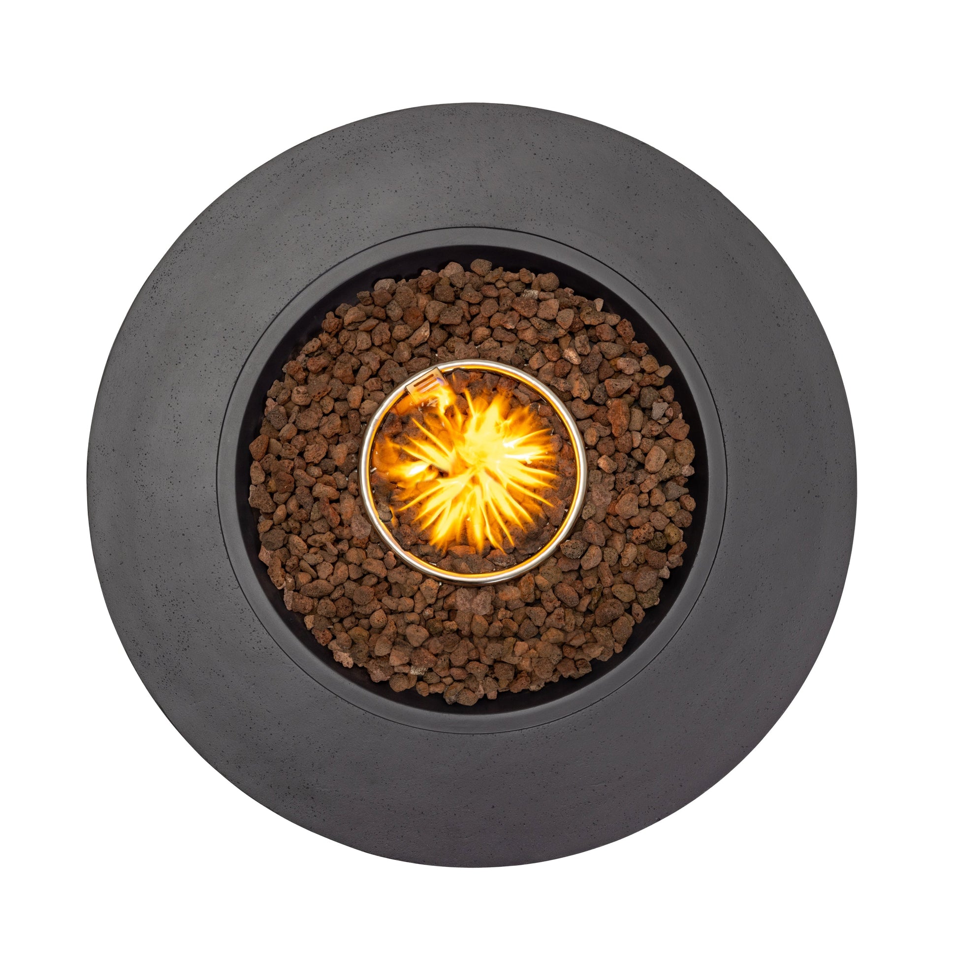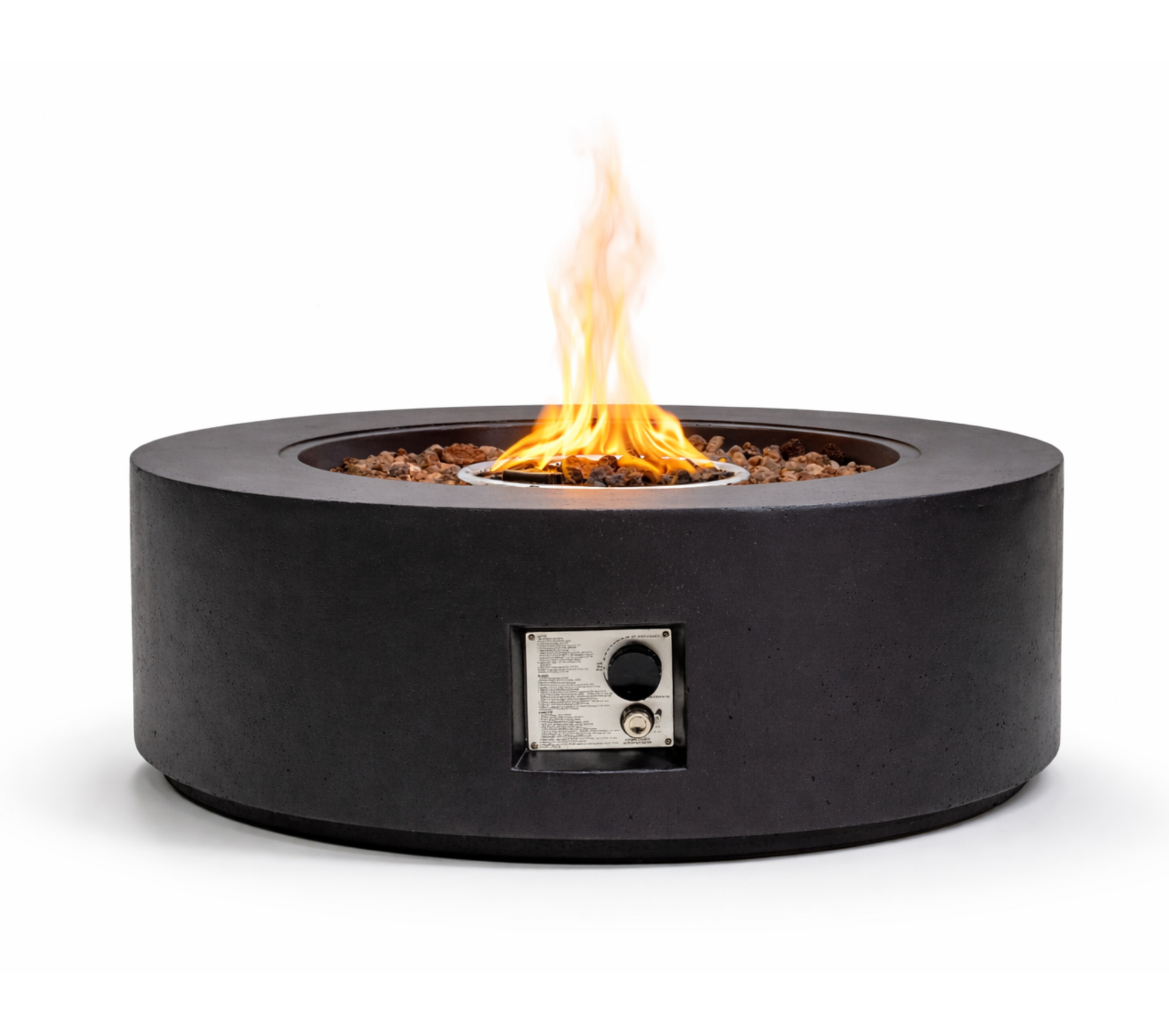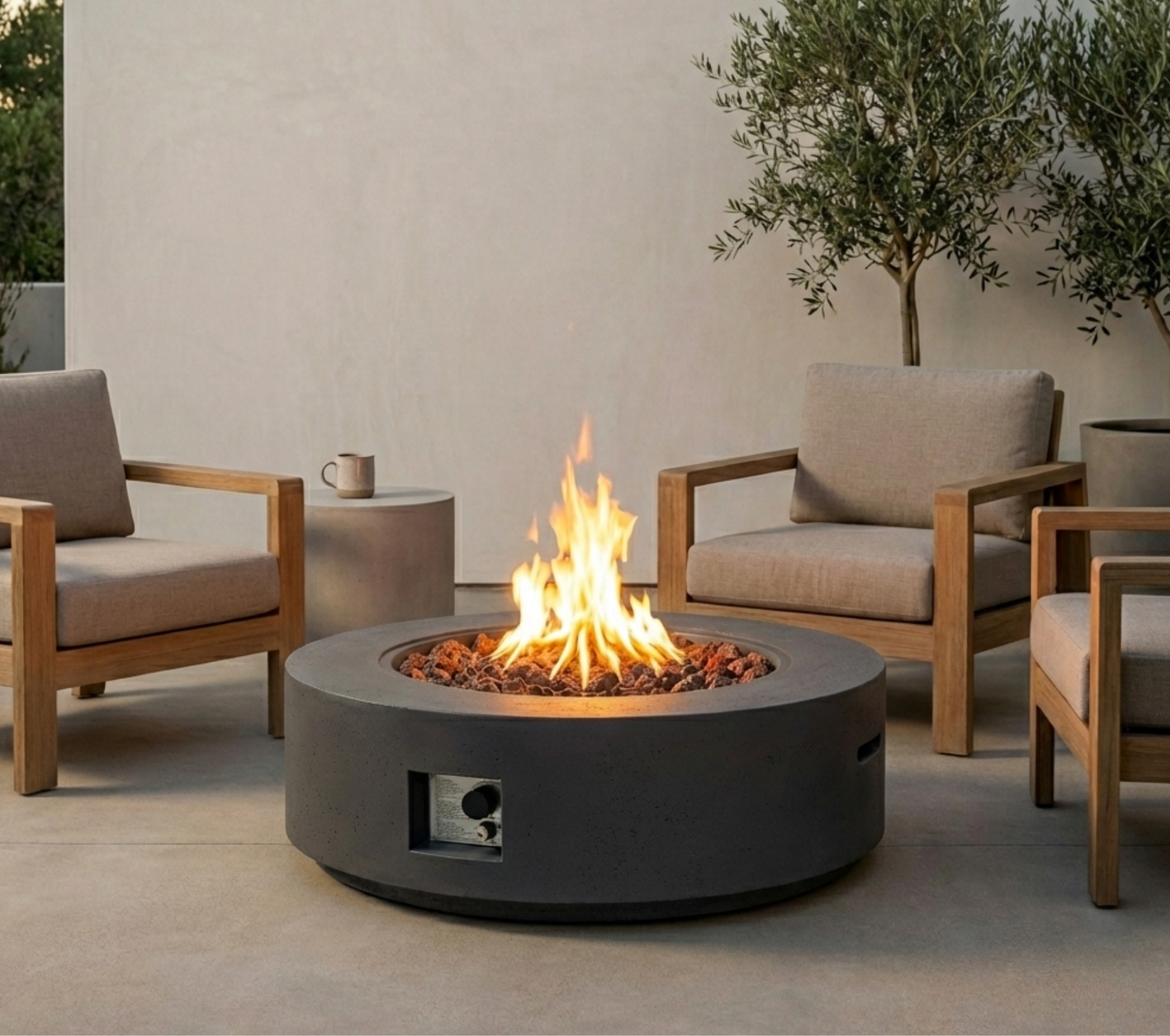 This 40' round propane fire pit table is designed for outdoor living spaces such as patios or gardens, combining functional warmth with modern style. Its lightweight concrete construction makes it easy to reposition while providing a stylish centerpiece for outdoor gatherings.