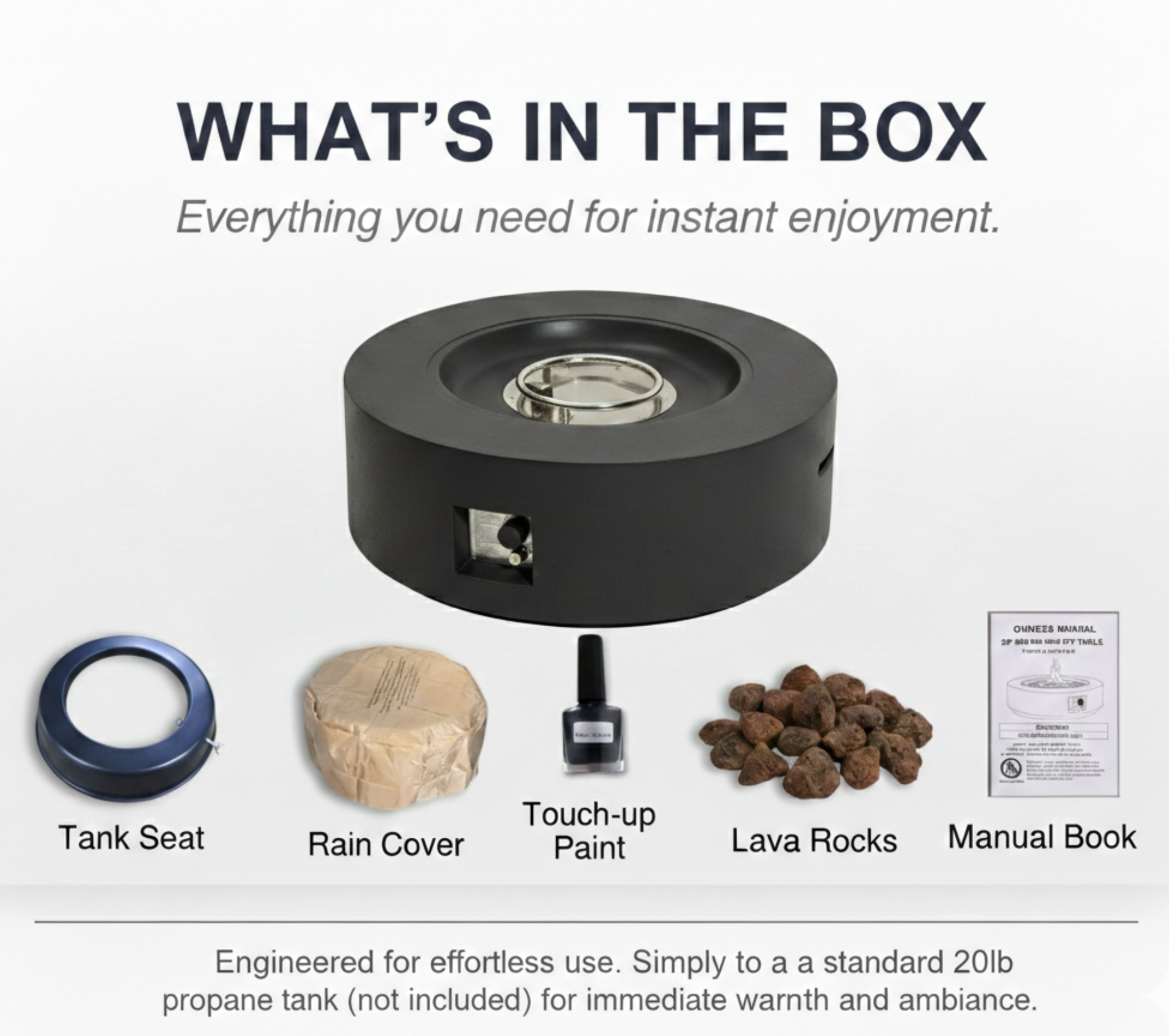 - Adjustable 50,000 BTU flame offers warmth and ambiance for outdoor use year-round
