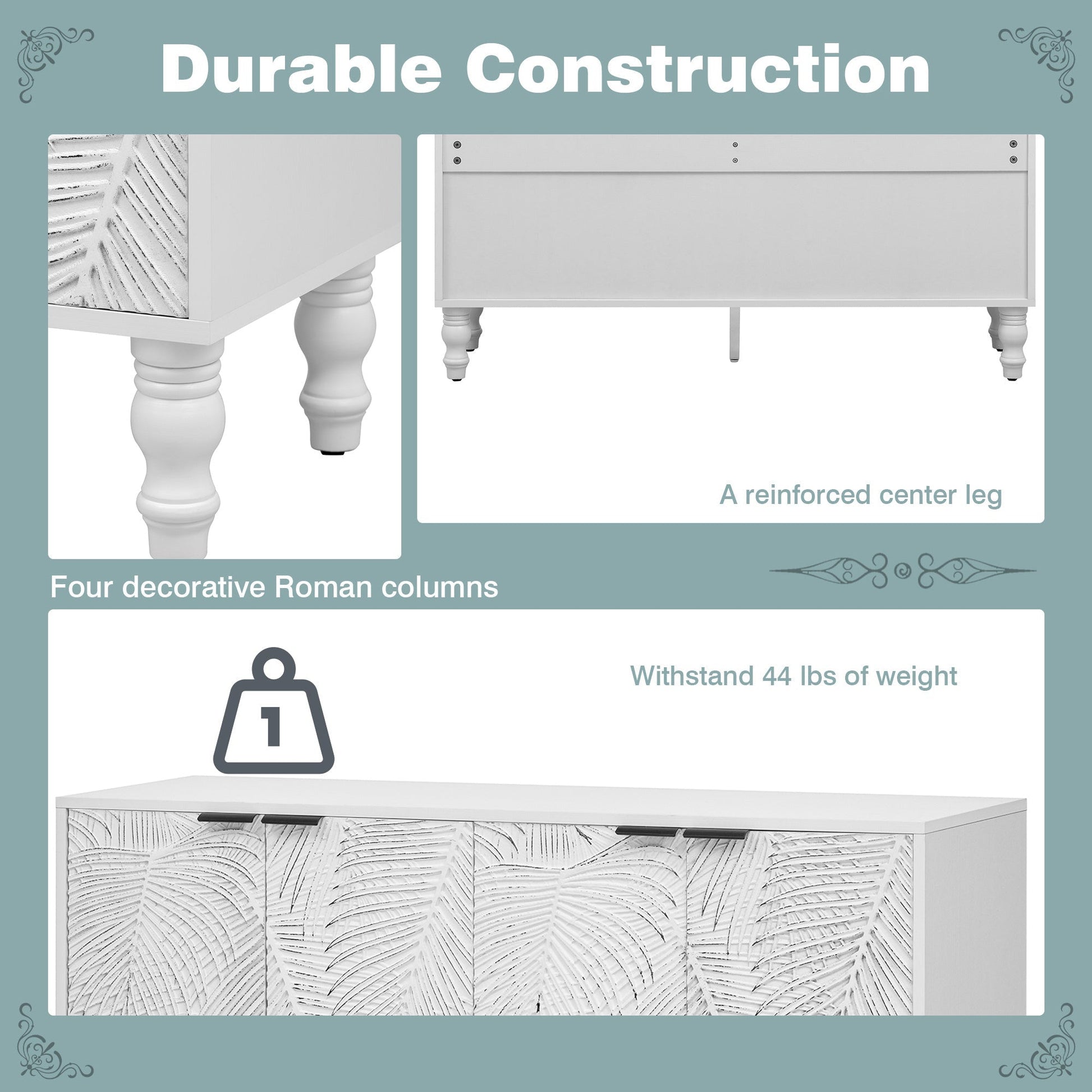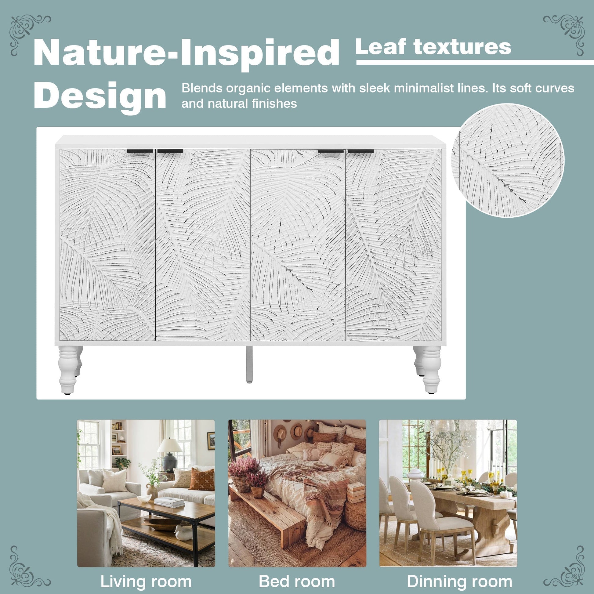 - Constructed with a unique leaf texture on cabinet doors for a natural and elegant aesthetic