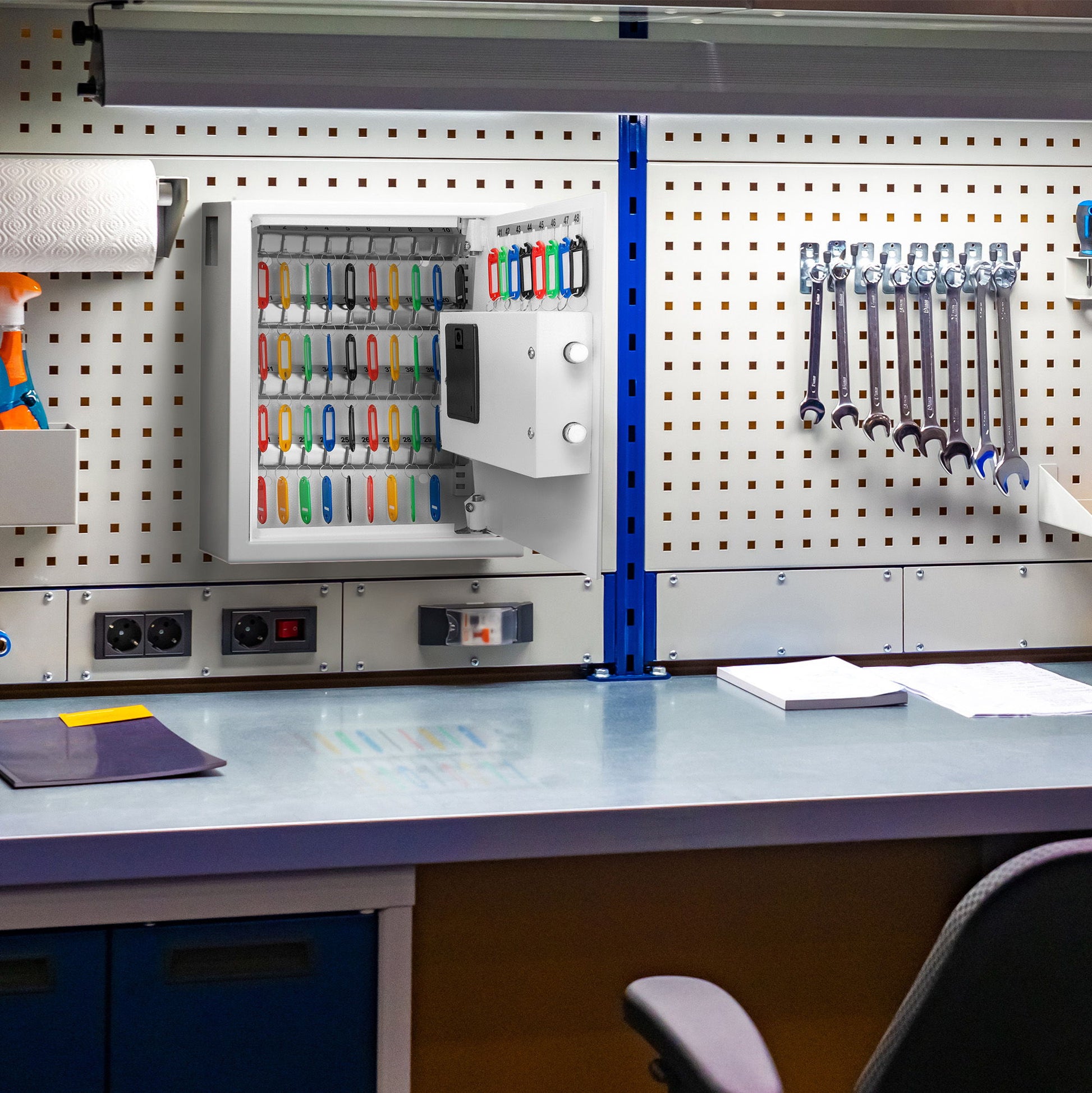 - Key Capacity and Organization: This digital wall safe can accommodate up to 48 keys, featuring numbered hooks and colored key tags for easy organization and identification, making it perfect for various settings like homes, offices, and more.