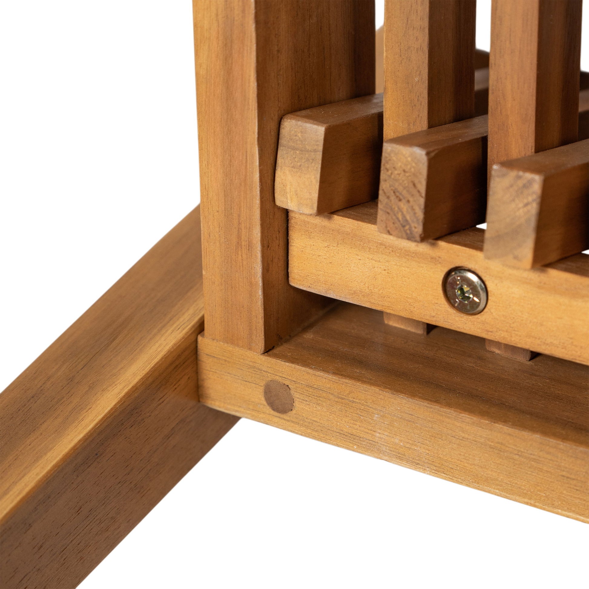 - Stylish Slatted Tabletop: The tabletop's slat design adds a chic, modern touch to the outdoor space. Aids water drainage in rain.