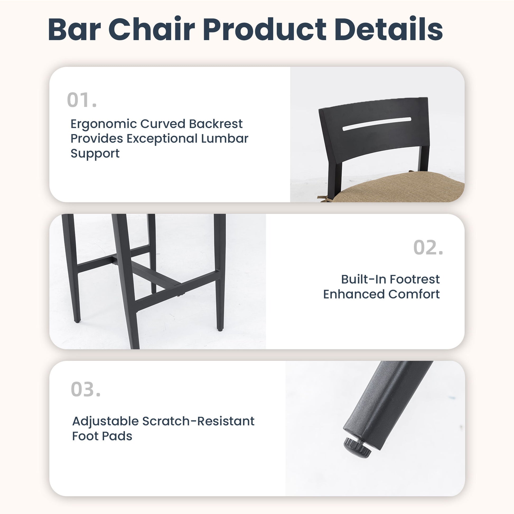 5 Pieces Outdoor Patio Bar Set, Rounded Square Table & 4 Aluminum Bar Stools