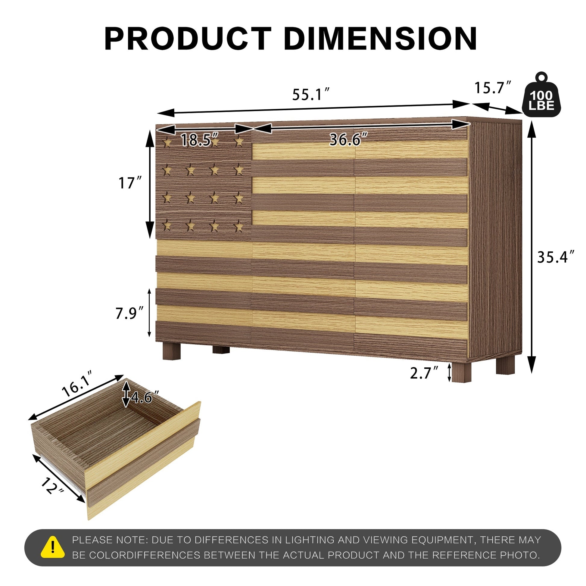 - Constructed with 2 drawers and 3 doors with adjustable shelves for organized storage