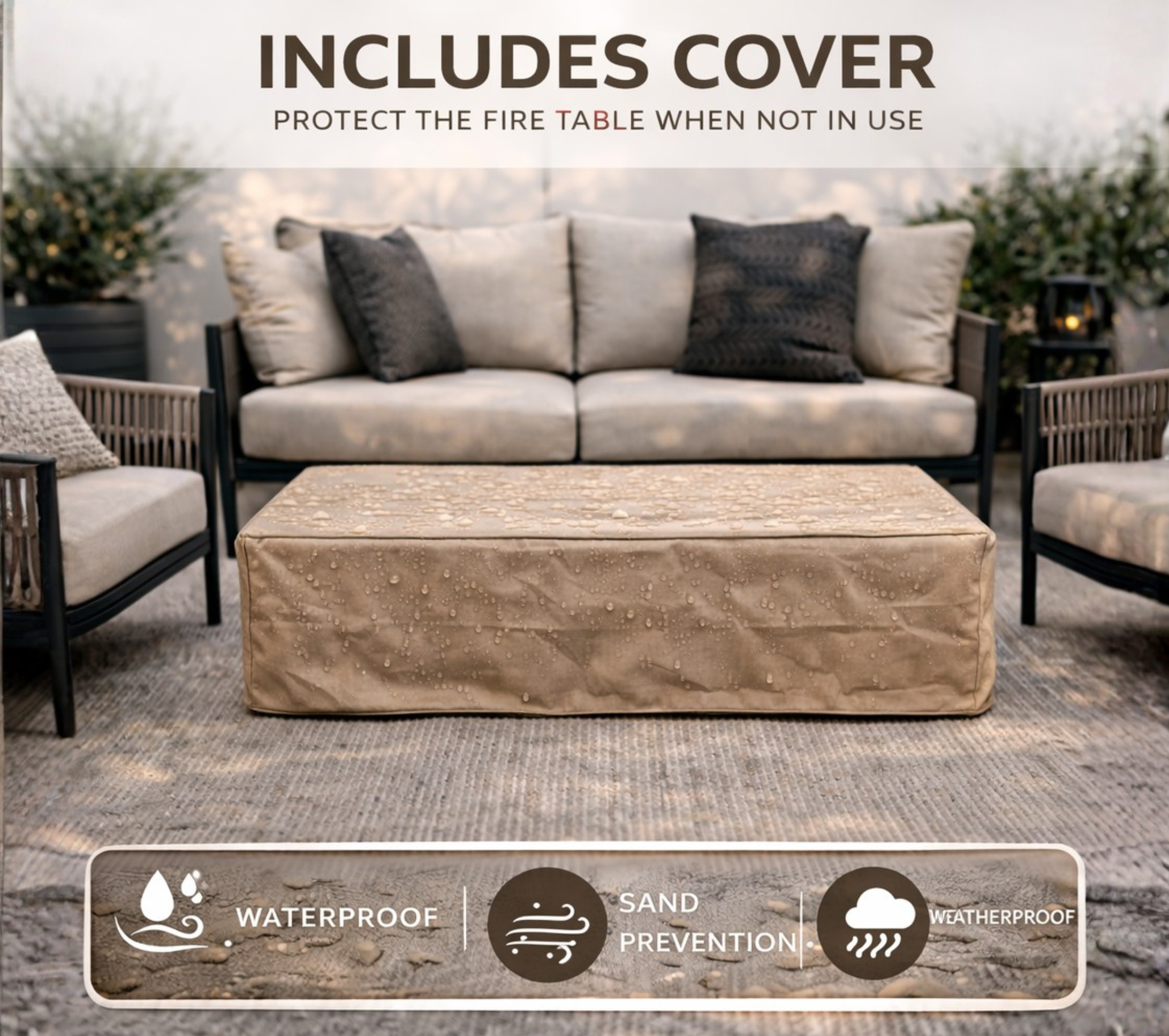 This 56-inch propane fire pit table offers a modern, minimalist aesthetic perfect for your patio, backyard, or deck. Combining both warmth and style, it doubles as a fire pit and coffee table to create a welcoming outdoor centerpiece.