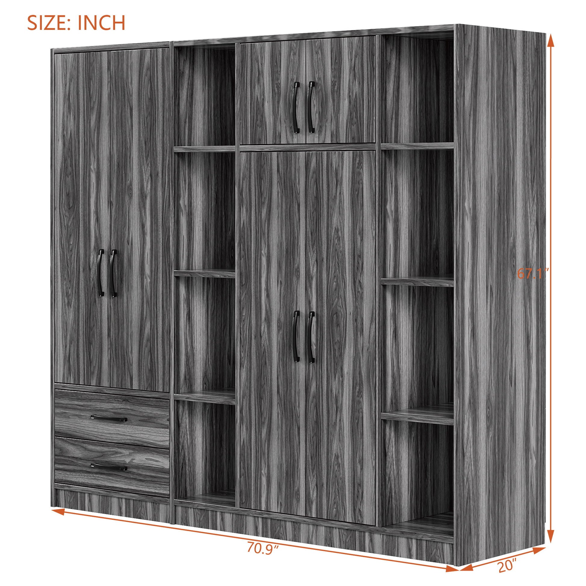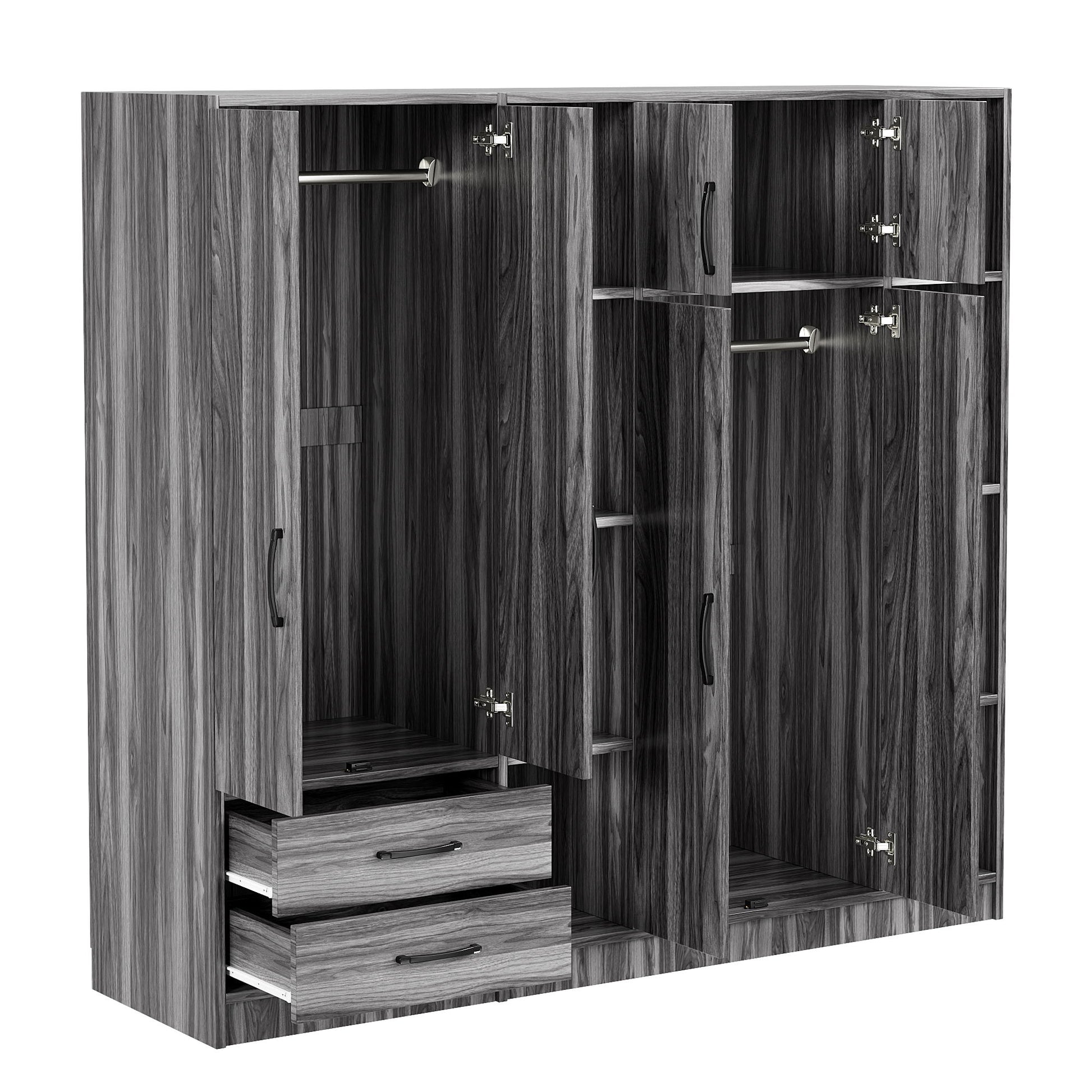6 Door Wardrobe With Shelves And Drawers - Gray
