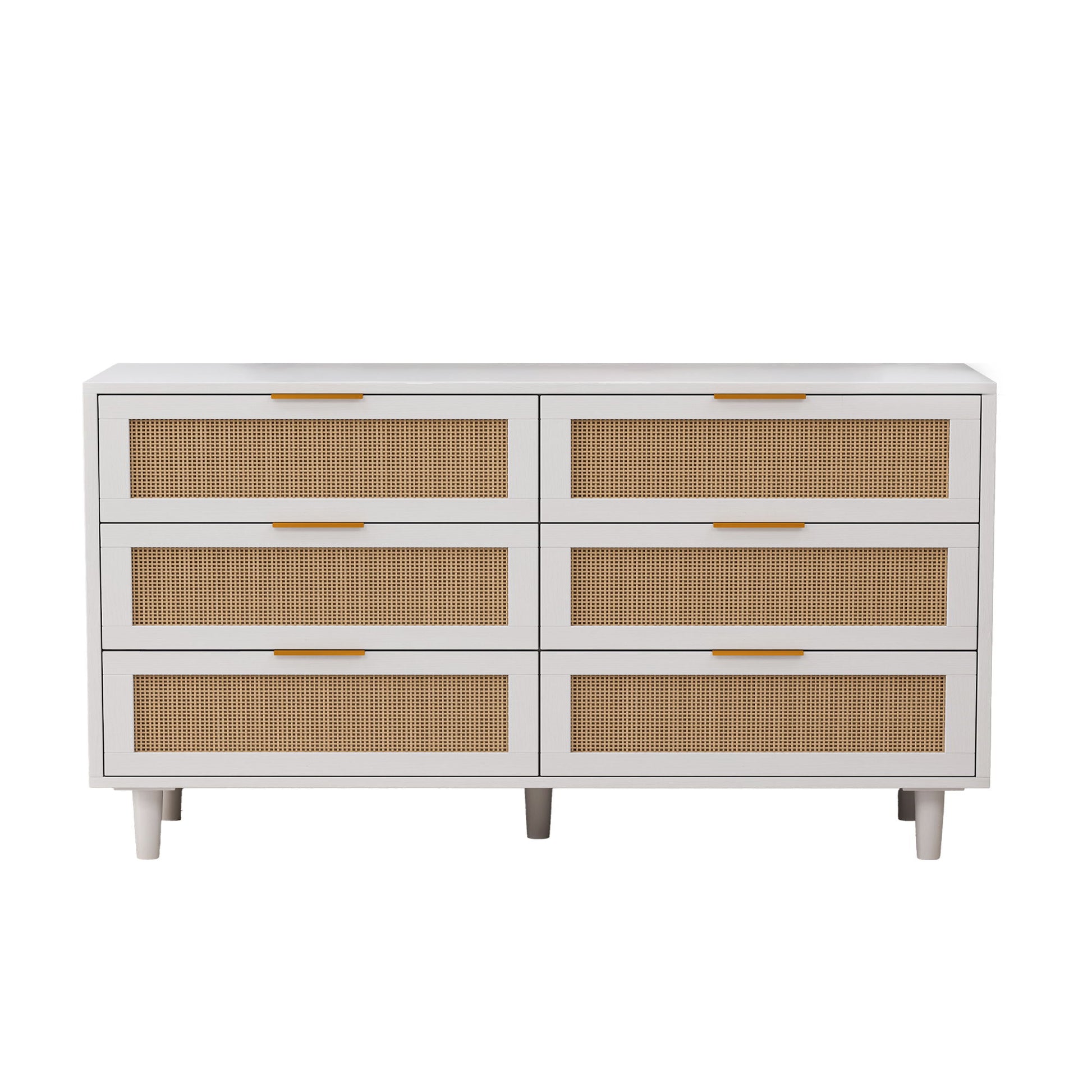 Modern Rattan Dresser With 6 Drawers For Bedroom And Living Room - Oak
