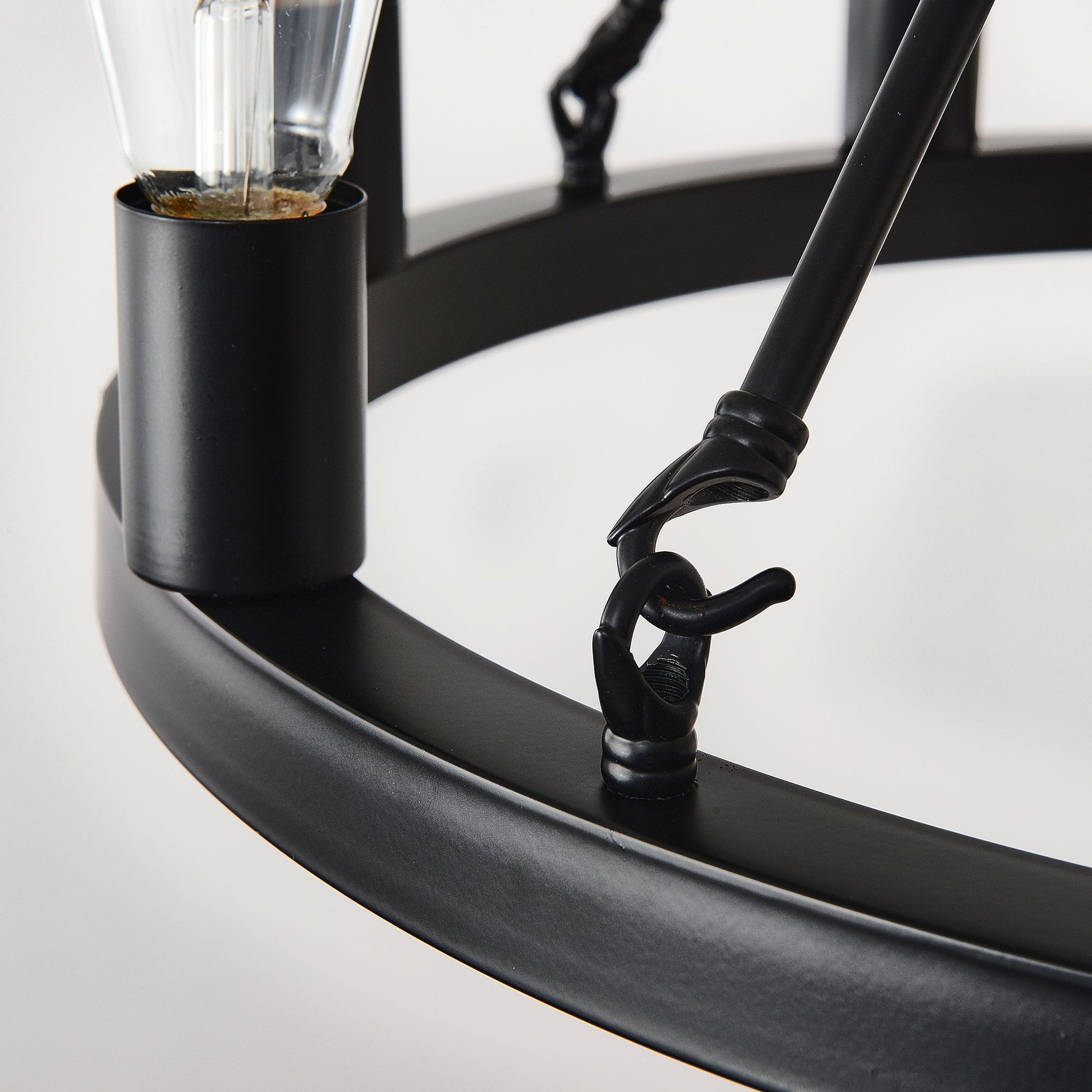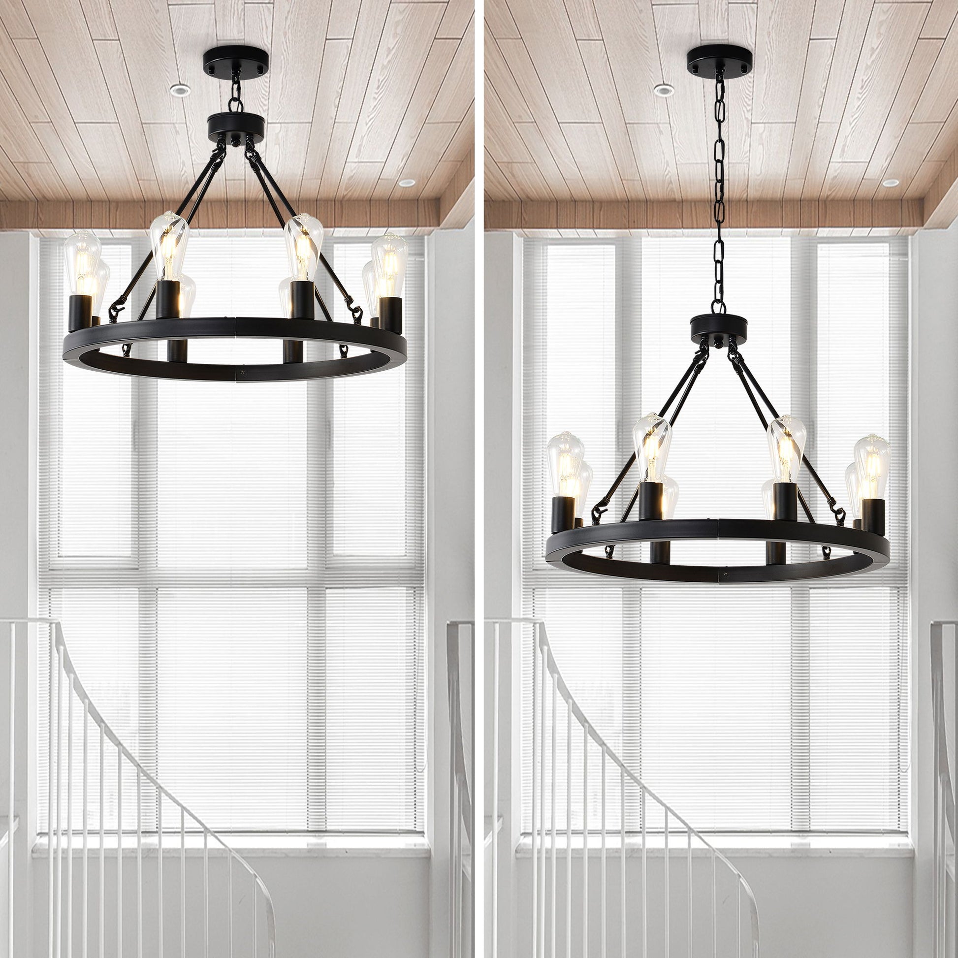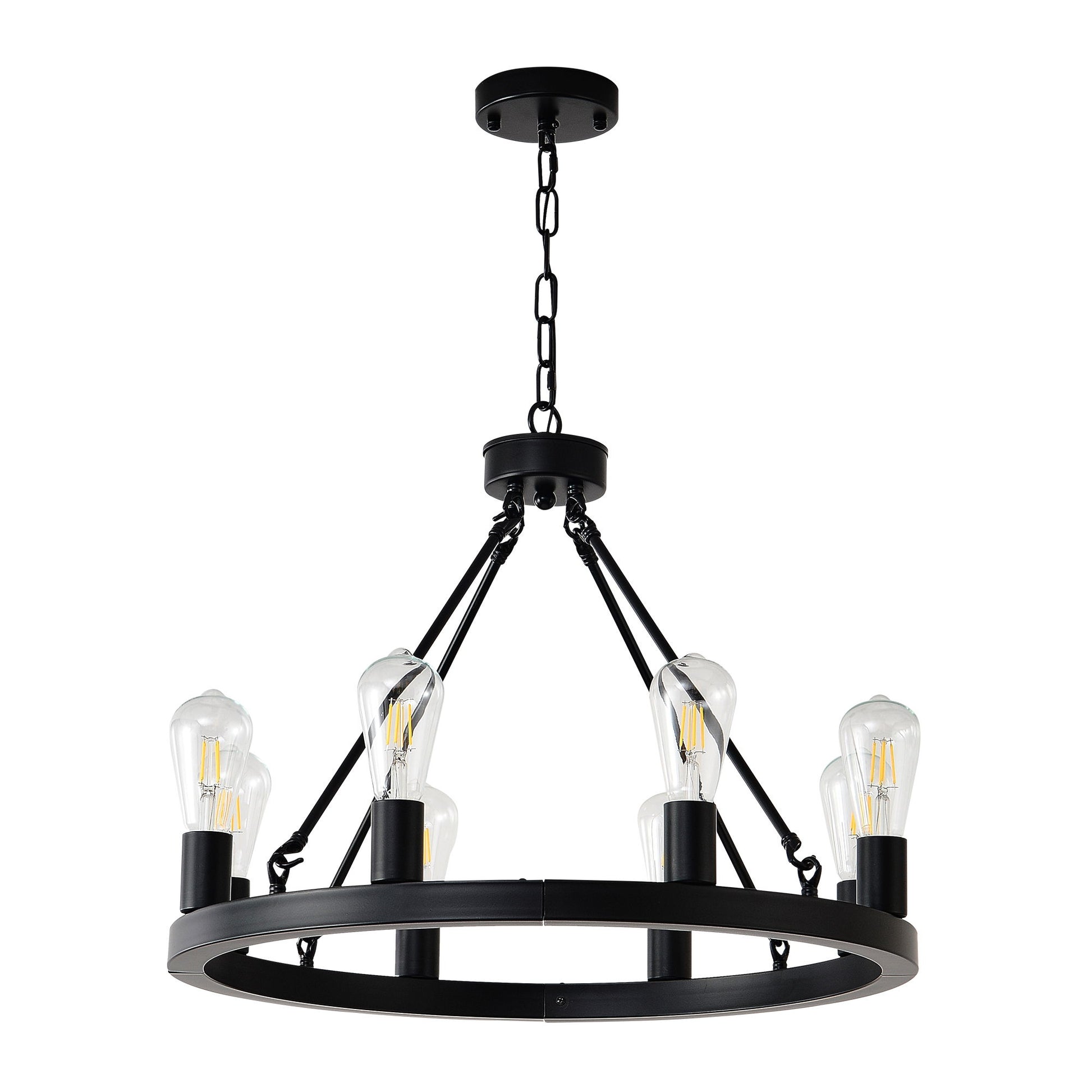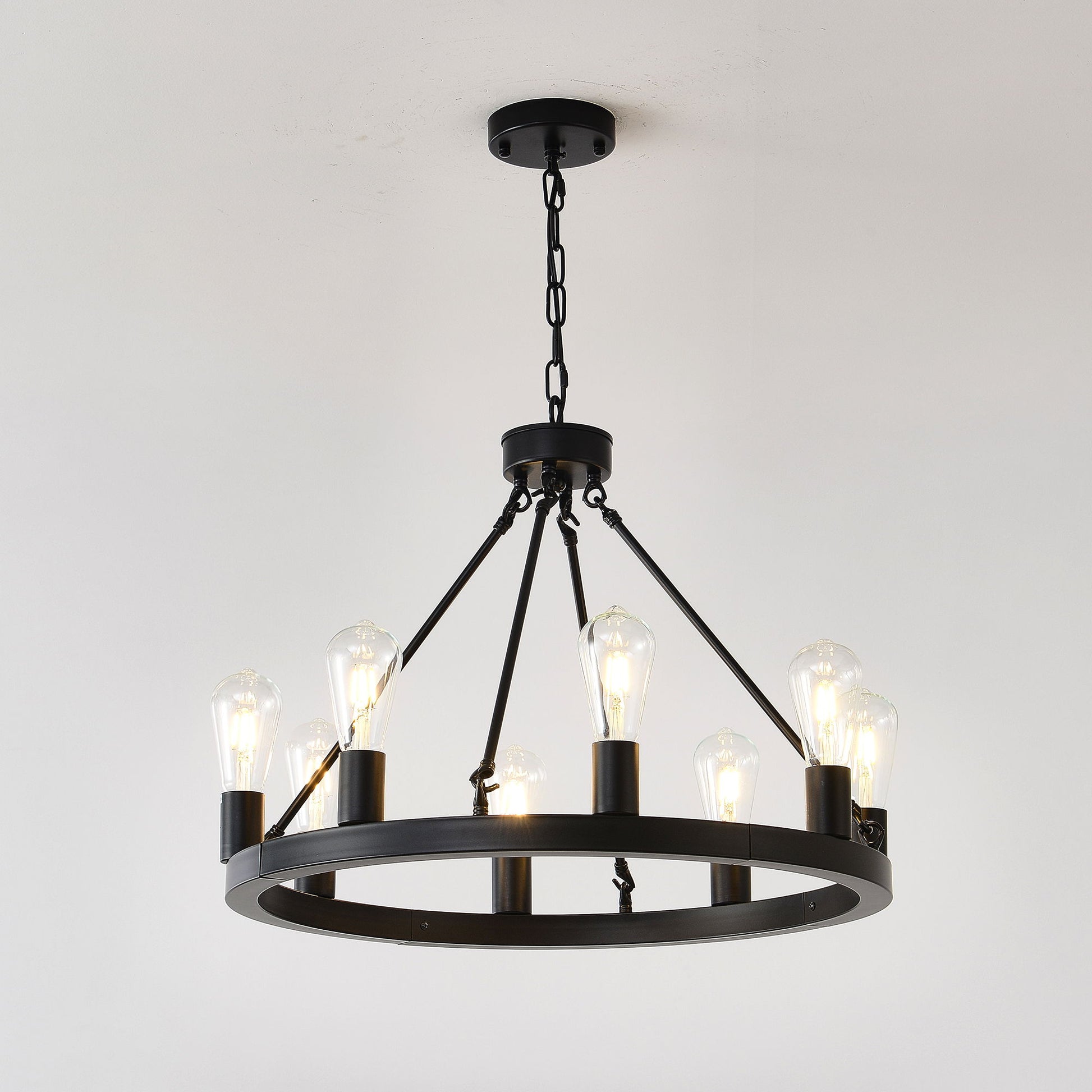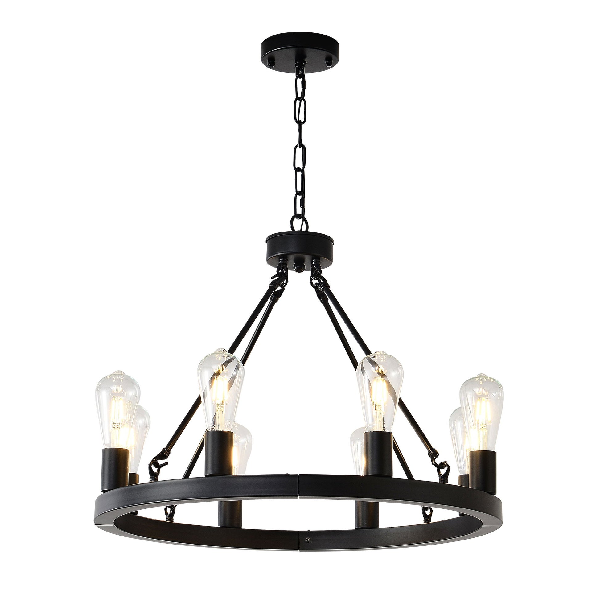6 Light (No Bulbs) Wagon Wheel Chandelier Farmhouse Modern Small Round Chandelier For Living Room Kitchen Island Foyer Hallway Entryway Bedroom Dining Room Light Fixture Ceiling Hanging - Matte Black