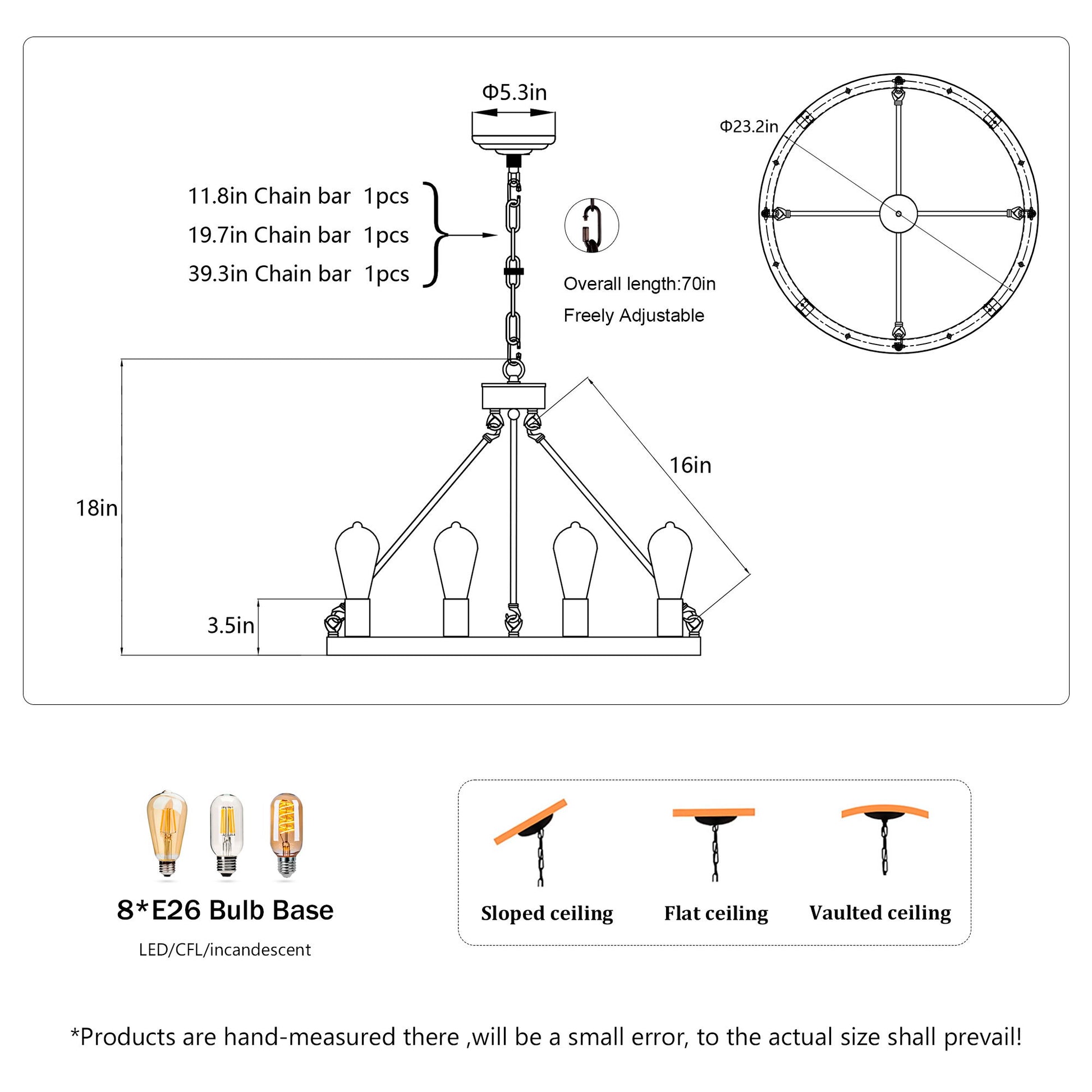 - Versatile Style: Suitable for flat or sloped ceilings, fitting a variety of spaces.