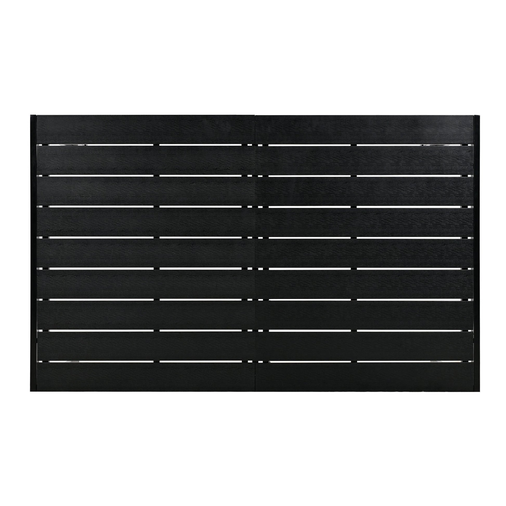 - Plastic slatted tabletop for easy maintenance and a sleek aesthetic