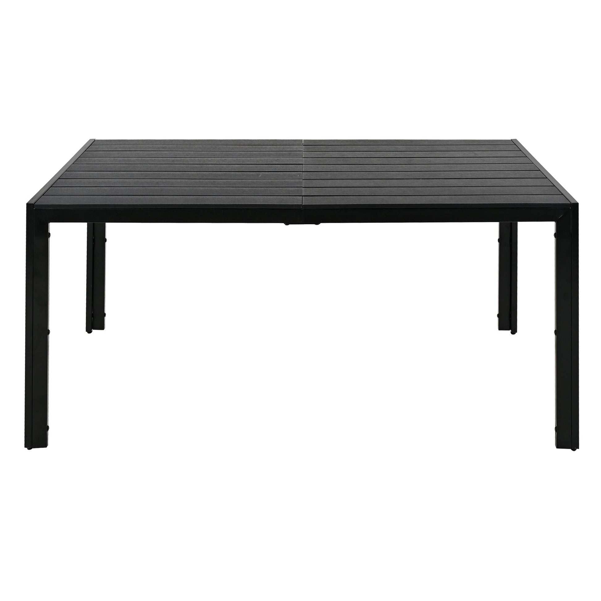 This six-person outdoor dining set combines durable construction with modern style, ideal for patios, gardens, balconies, and other alfresco dining areas. It offers both functional seating and a contemporary look for outdoor entertaining.