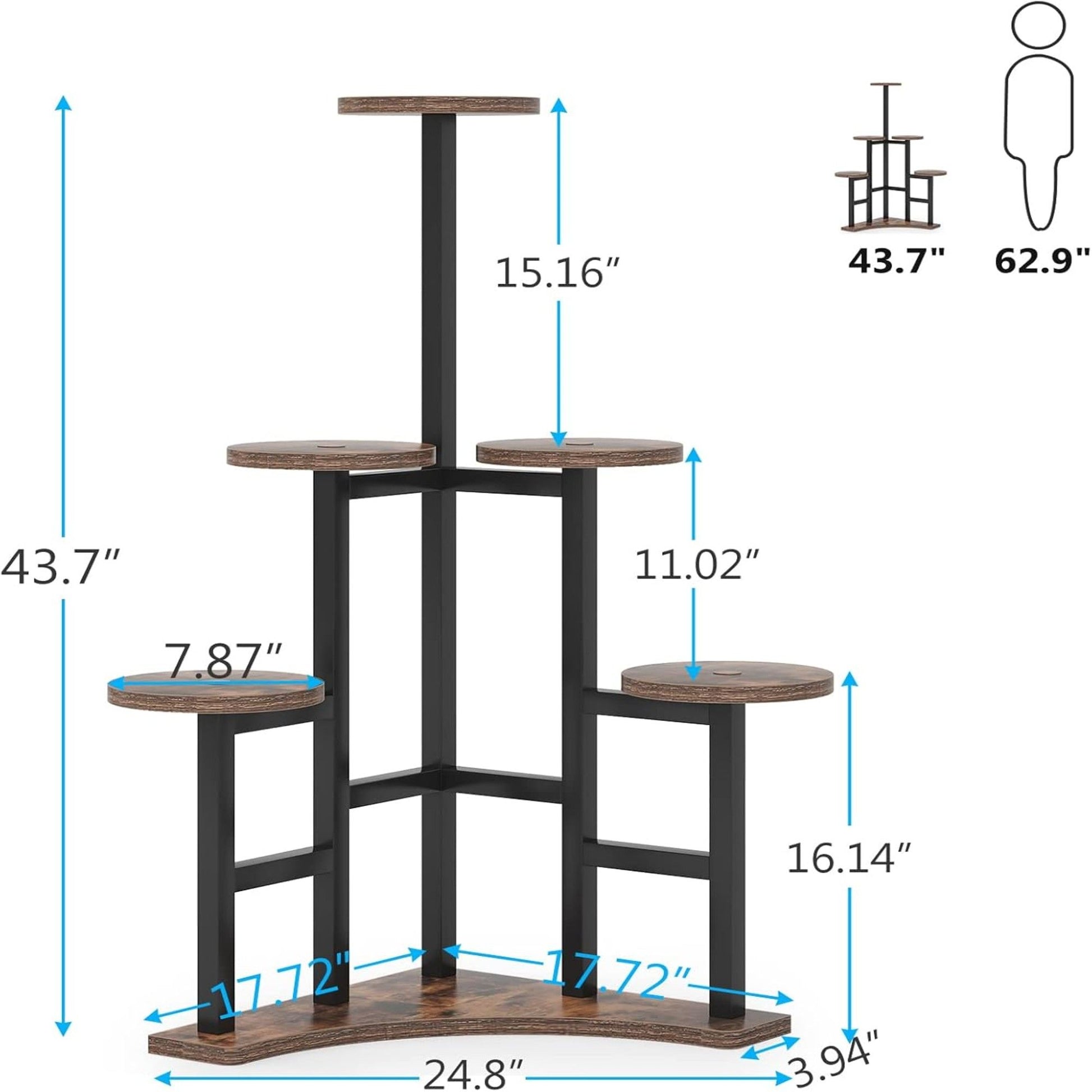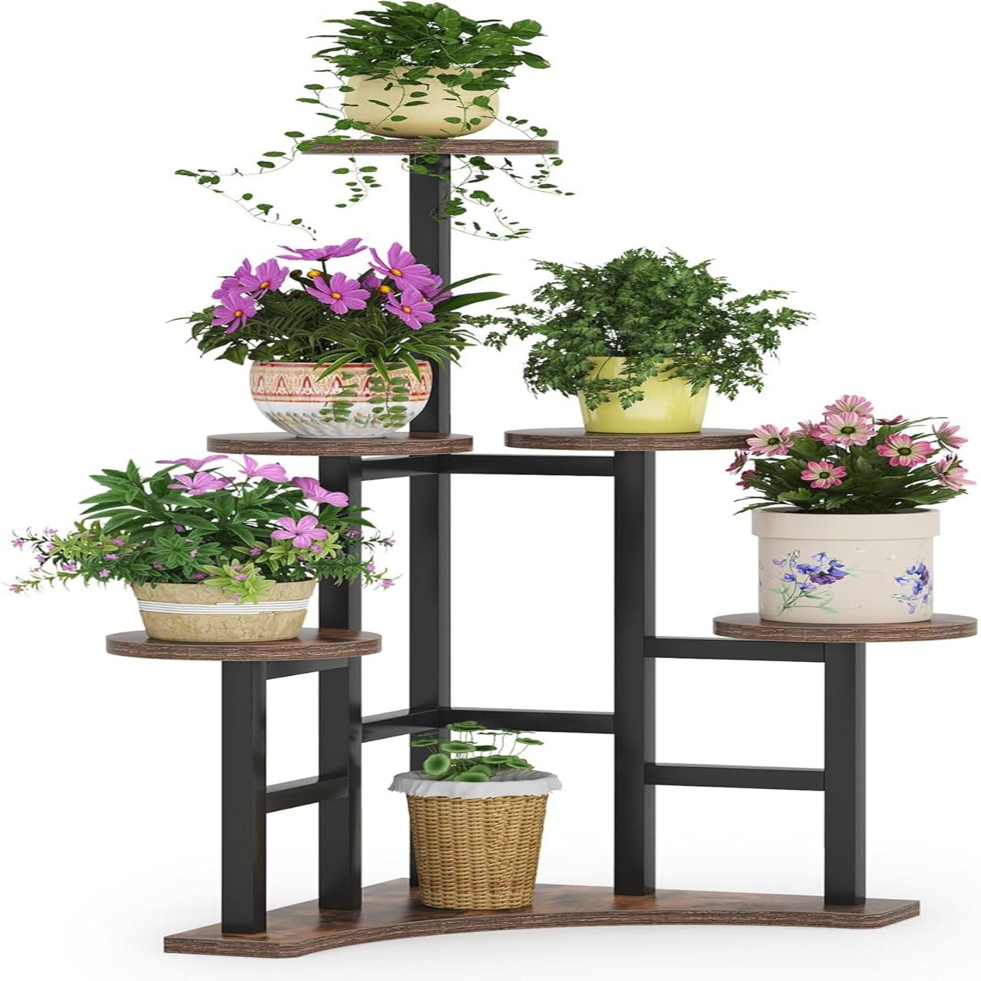 6 Tier Corner Plant Shelf With Frame For Living Room - Rustic Brown
