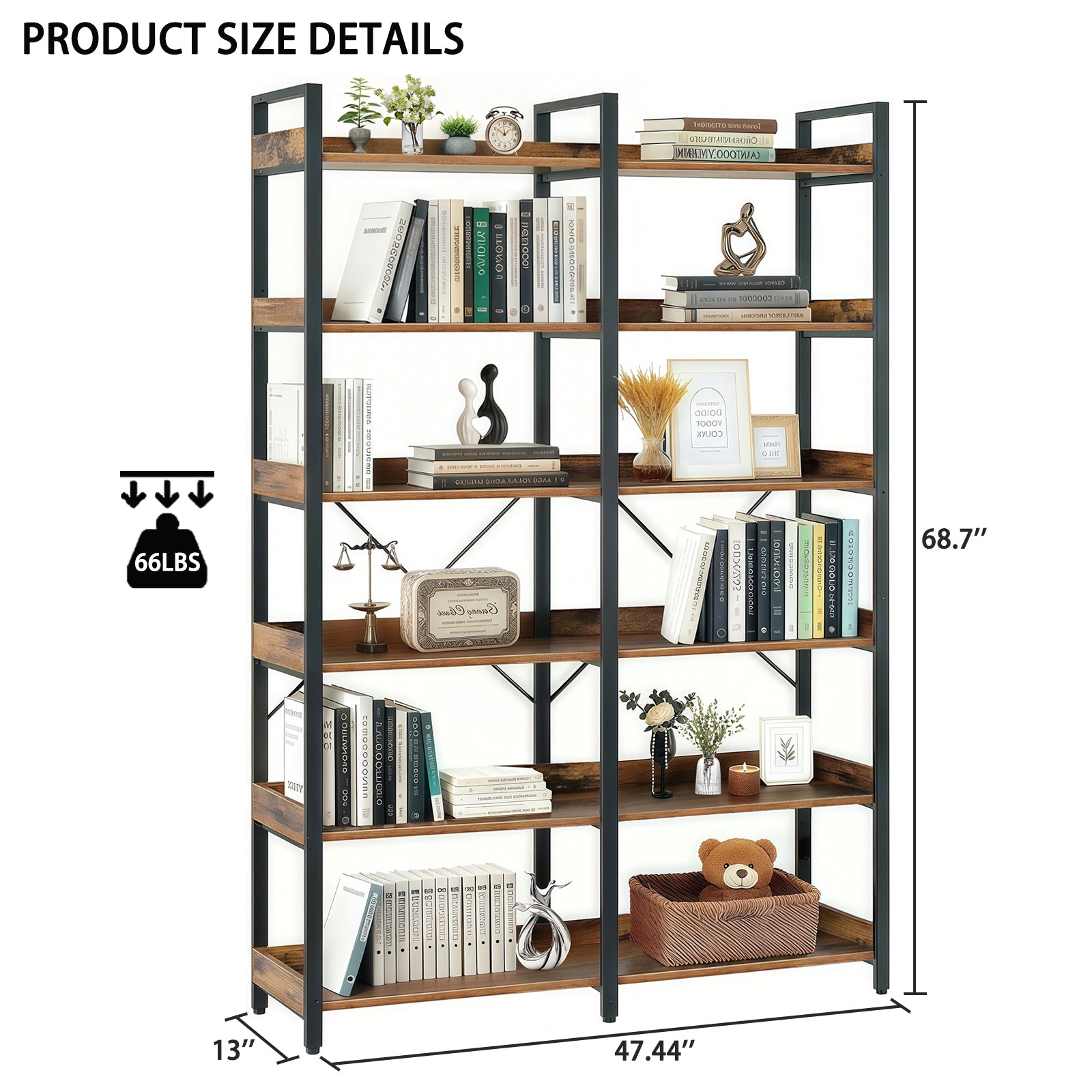 6-Tier Industrial Bookshelf With 12 Open Shelves