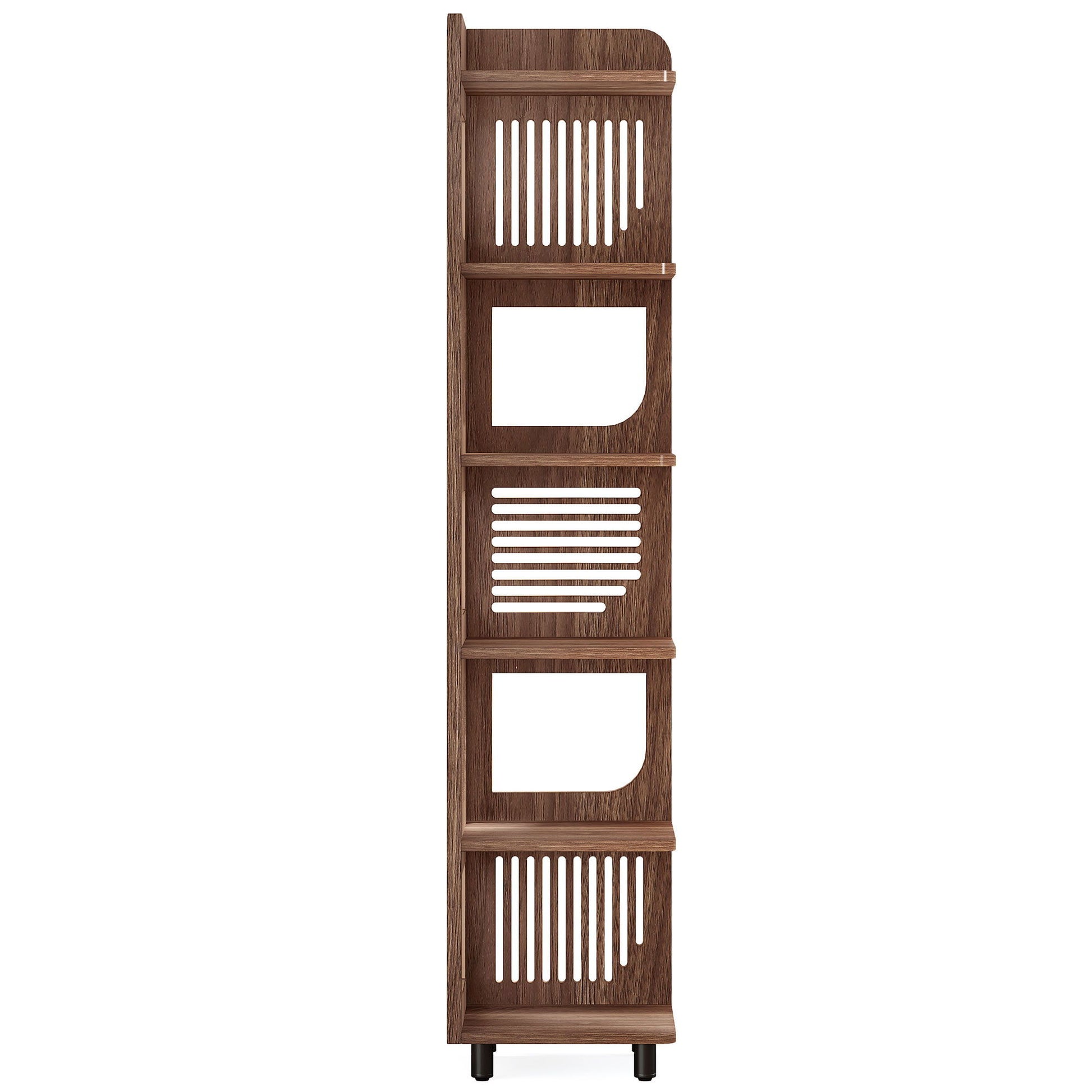 6 Tier Narrow Corner Bookshelf Storage For Living Room - Brown