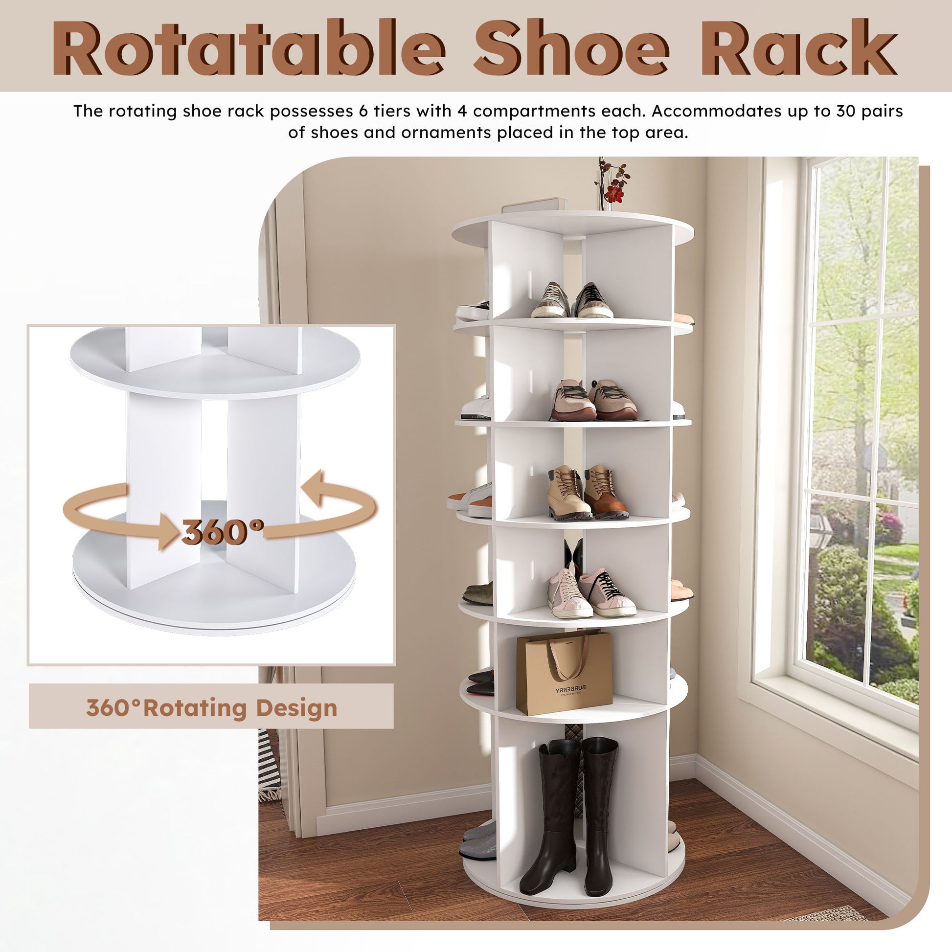 6 Tier Spinning Shoe Rack, Free Standing 360° Revolving Shoe Organizer - White