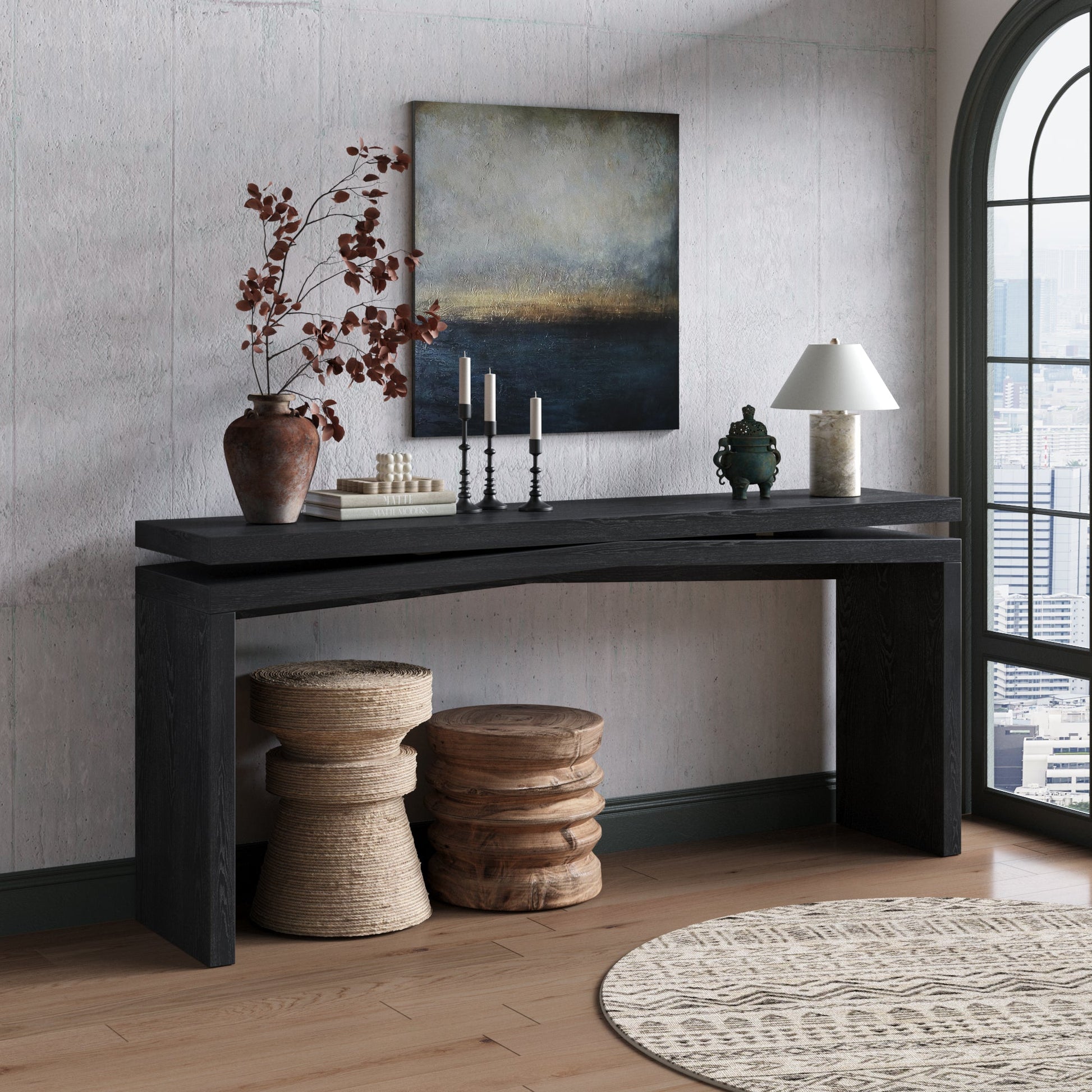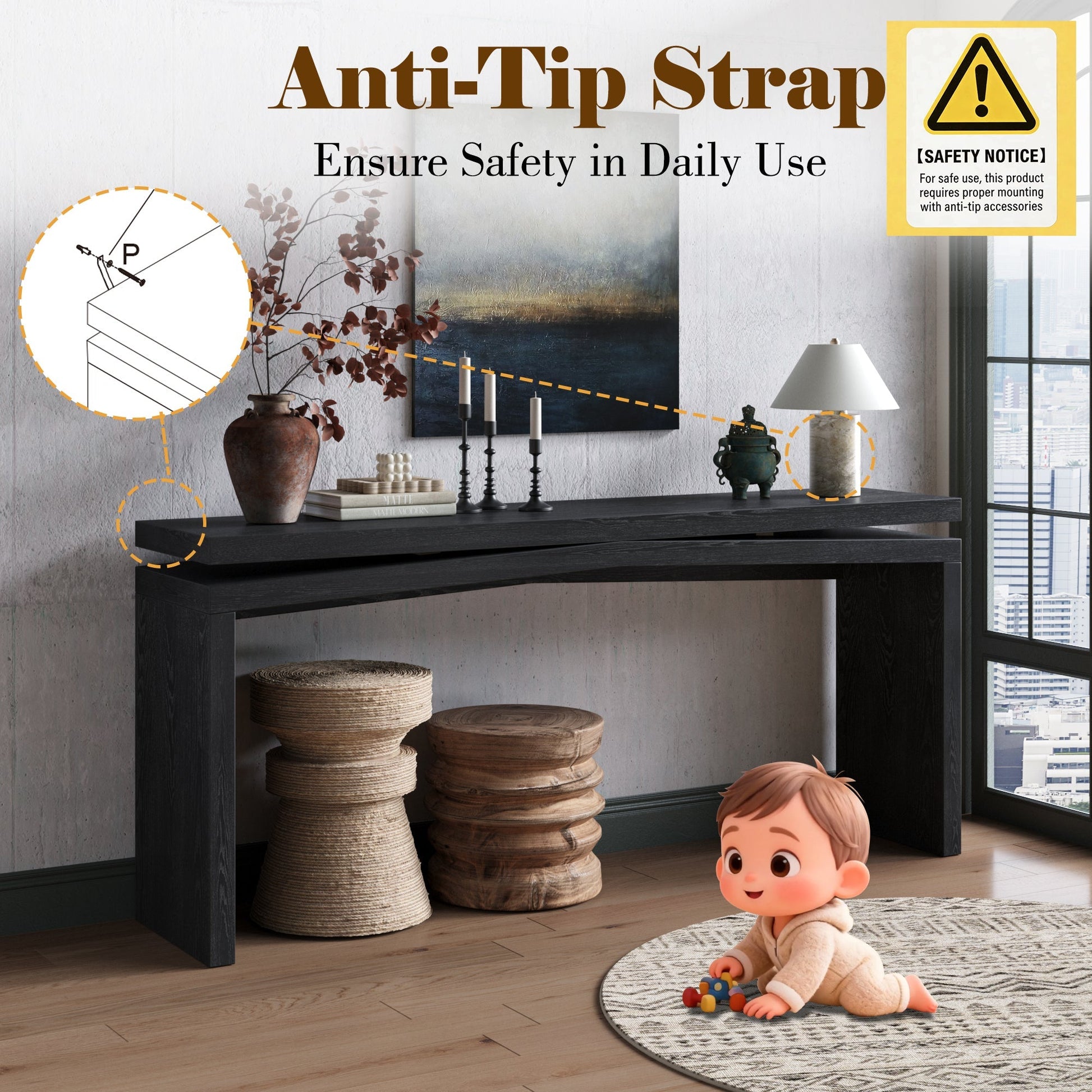 This 65-inch console table features a rustic farmhouse design crafted from solid wood veneer, ideal for adding functional style to living rooms, hallways, or entryways.